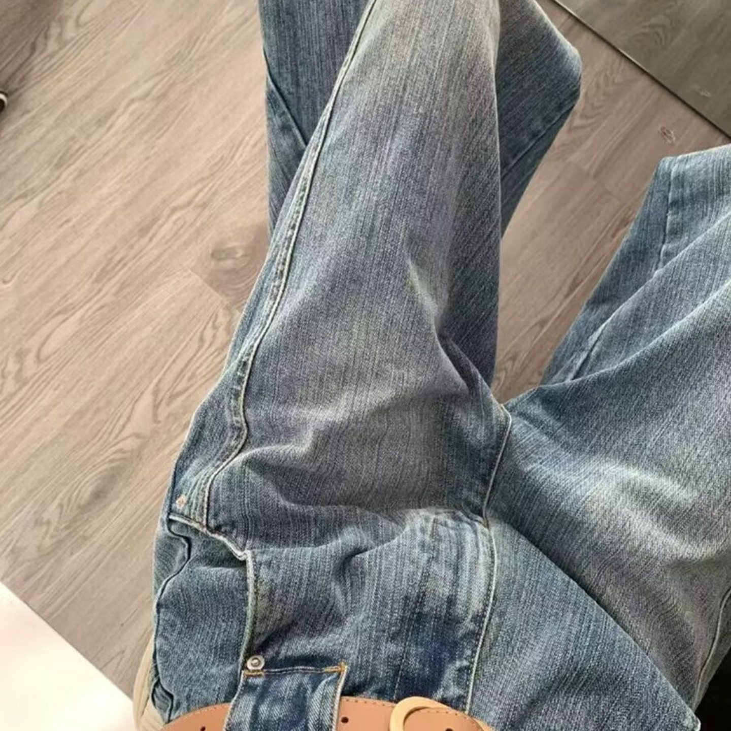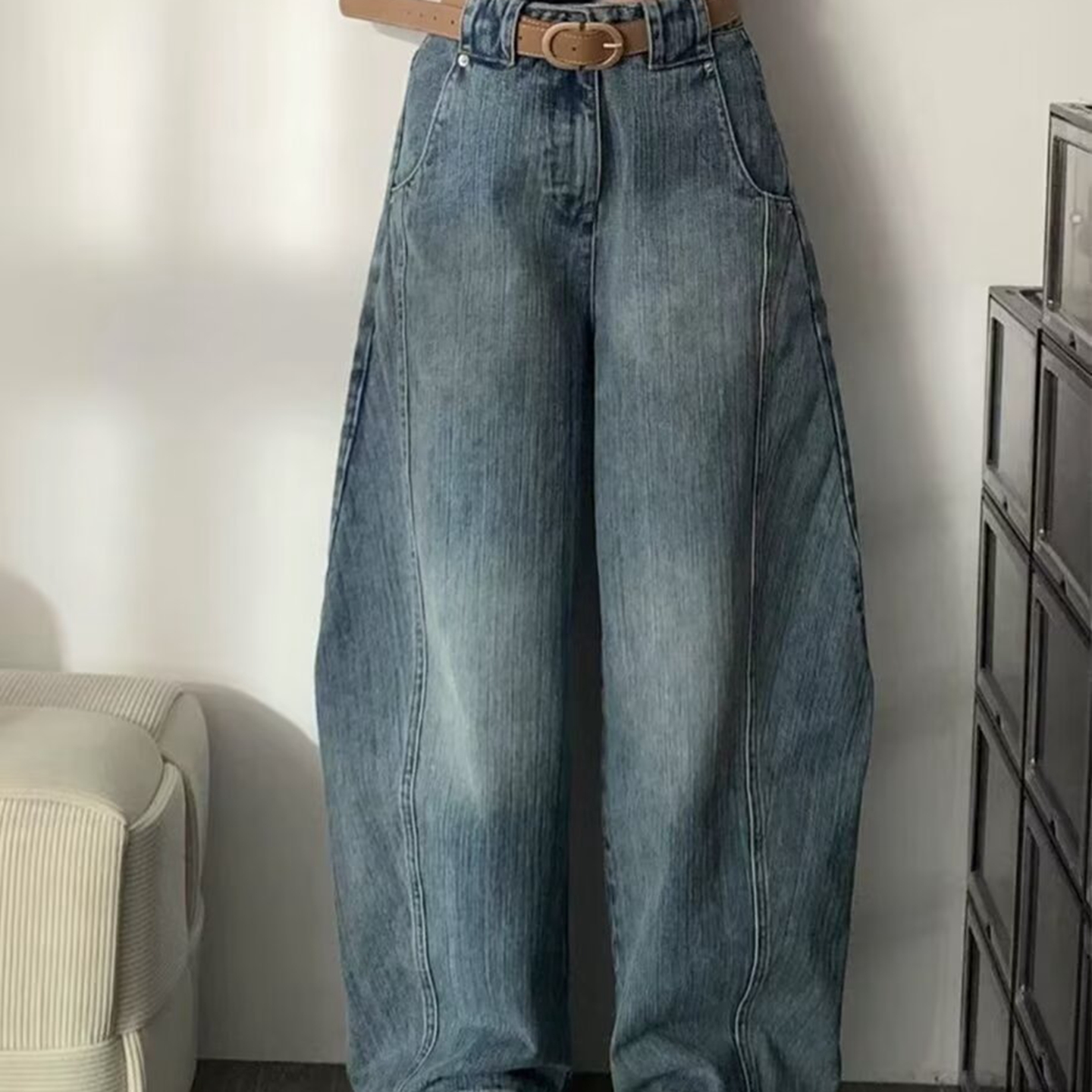 商品名称:(总)洛兰沙家居馆【只代发】【只代发】 2025只代发大码胖mm高腰宽松弯刀牛仔裤女春夏新款美式蓝色阔腿镰刀裤子批发31