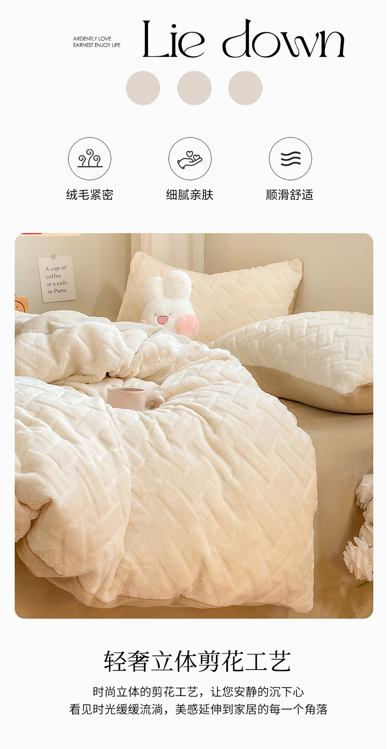 名兮家居 2025冬季新款加厚仿兔绒单被套 波浪-灰