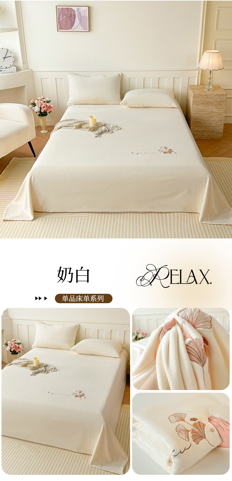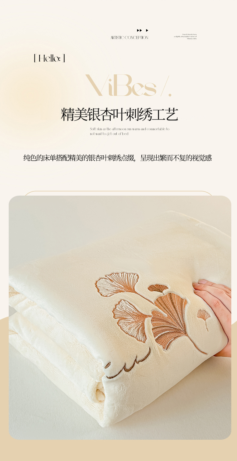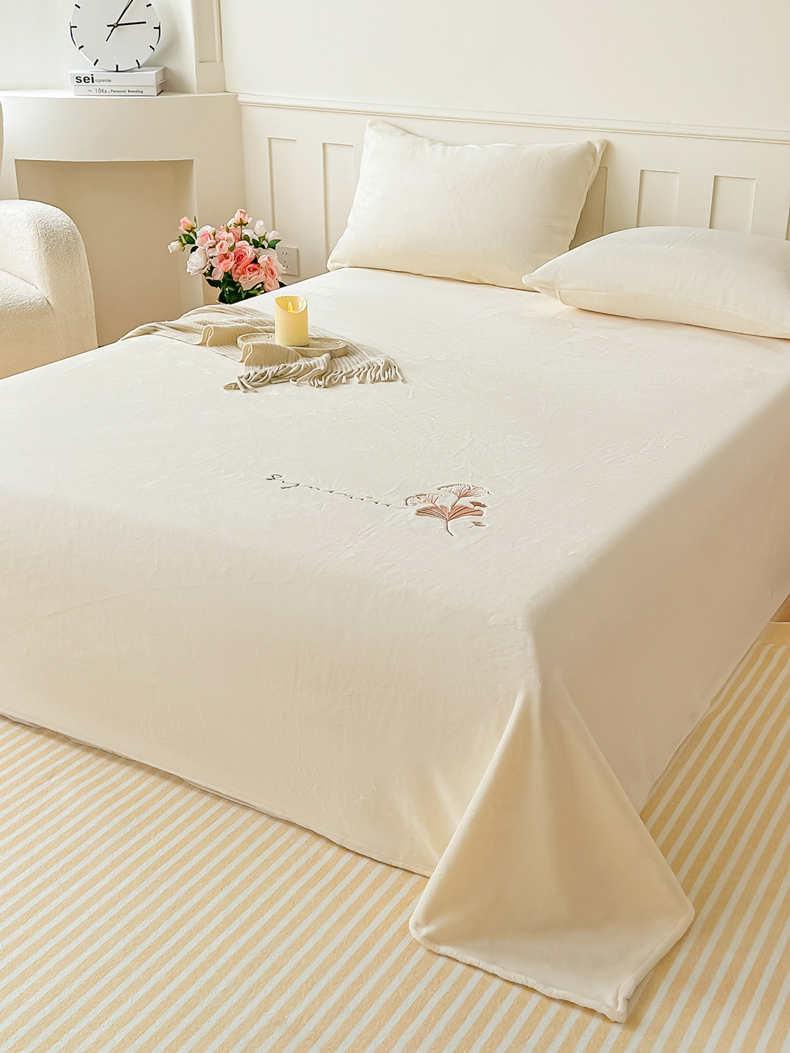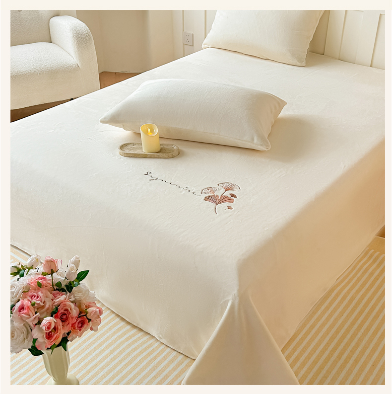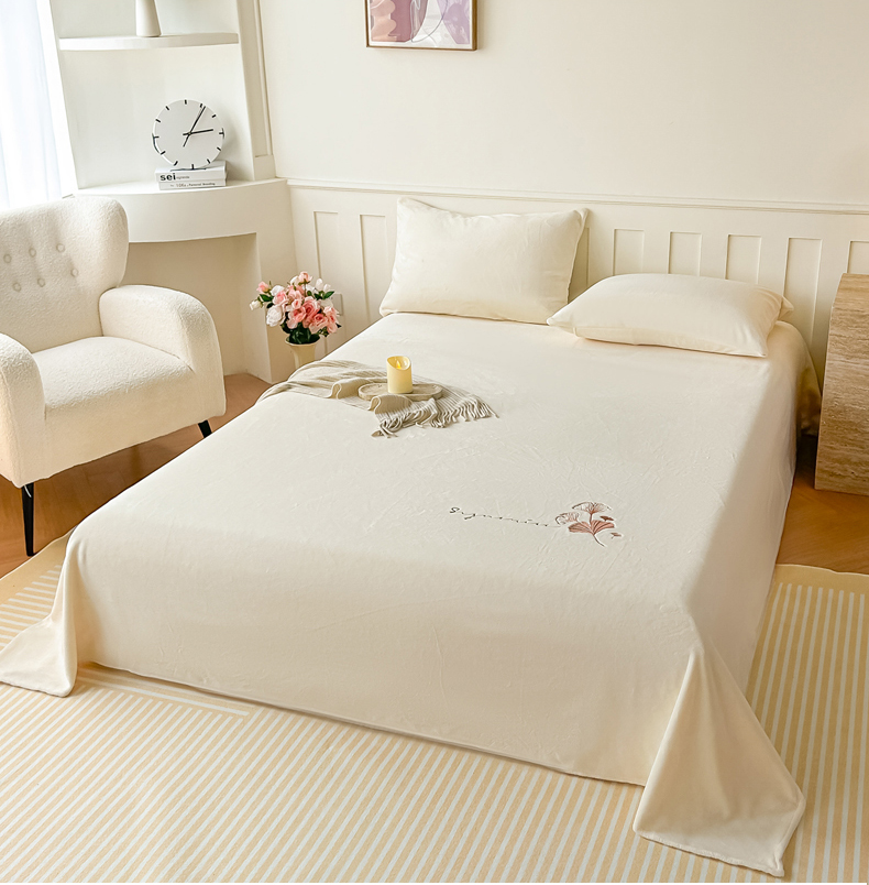 芙绣家纺 2025新款牛奶绒刺绣床单 奶白