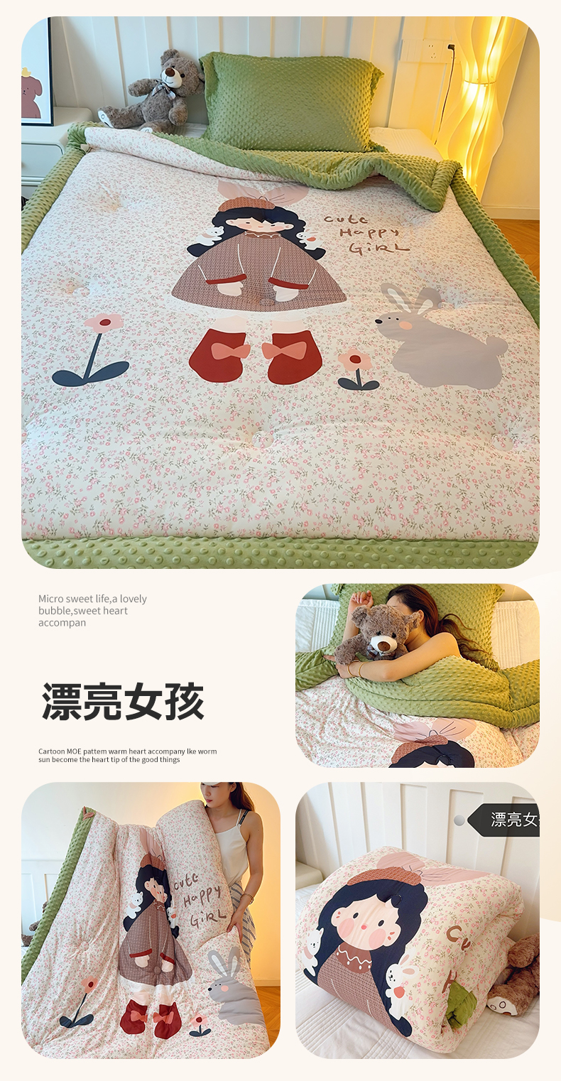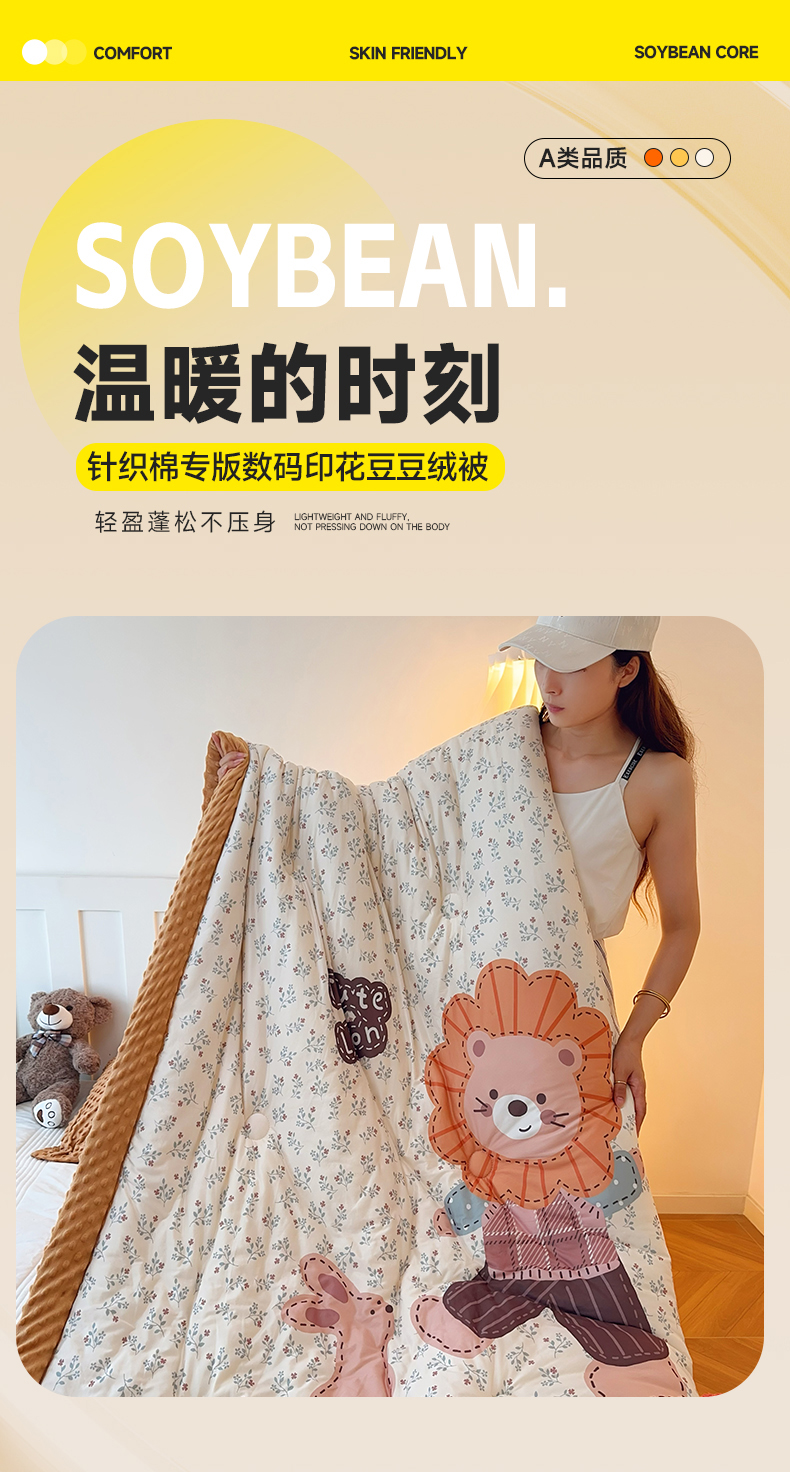 (总)兜米家居 2025新款针织棉专版数码印花豆豆绒被被子被芯,国宝熊猫,可爱兔兔,蓝帽小象,漂亮女孩,晚安小熊,小狮子