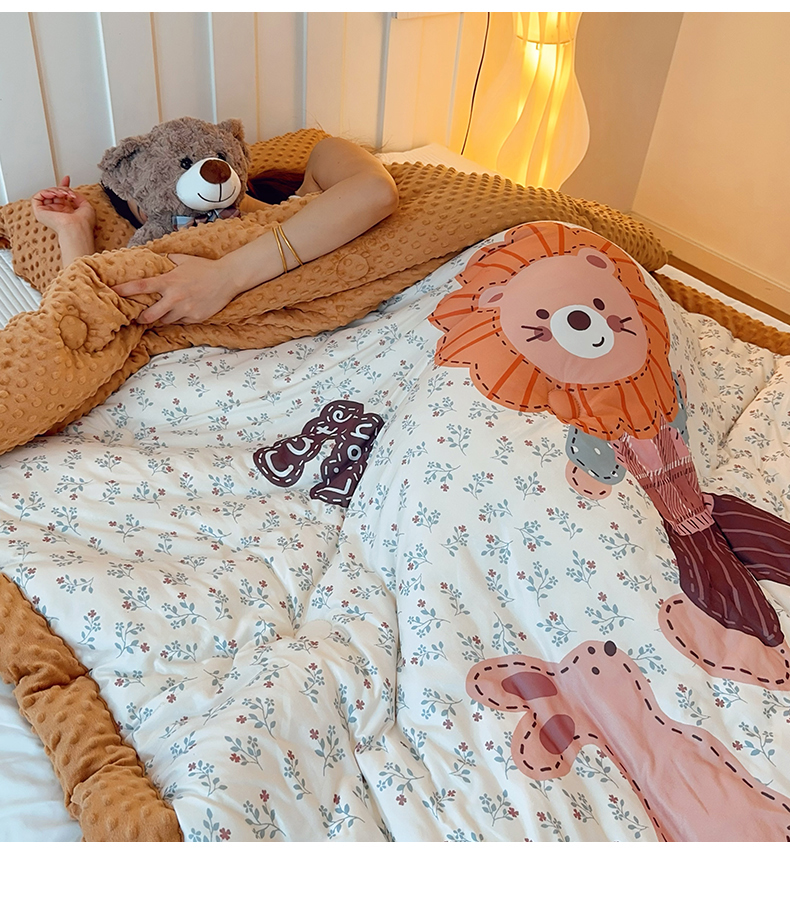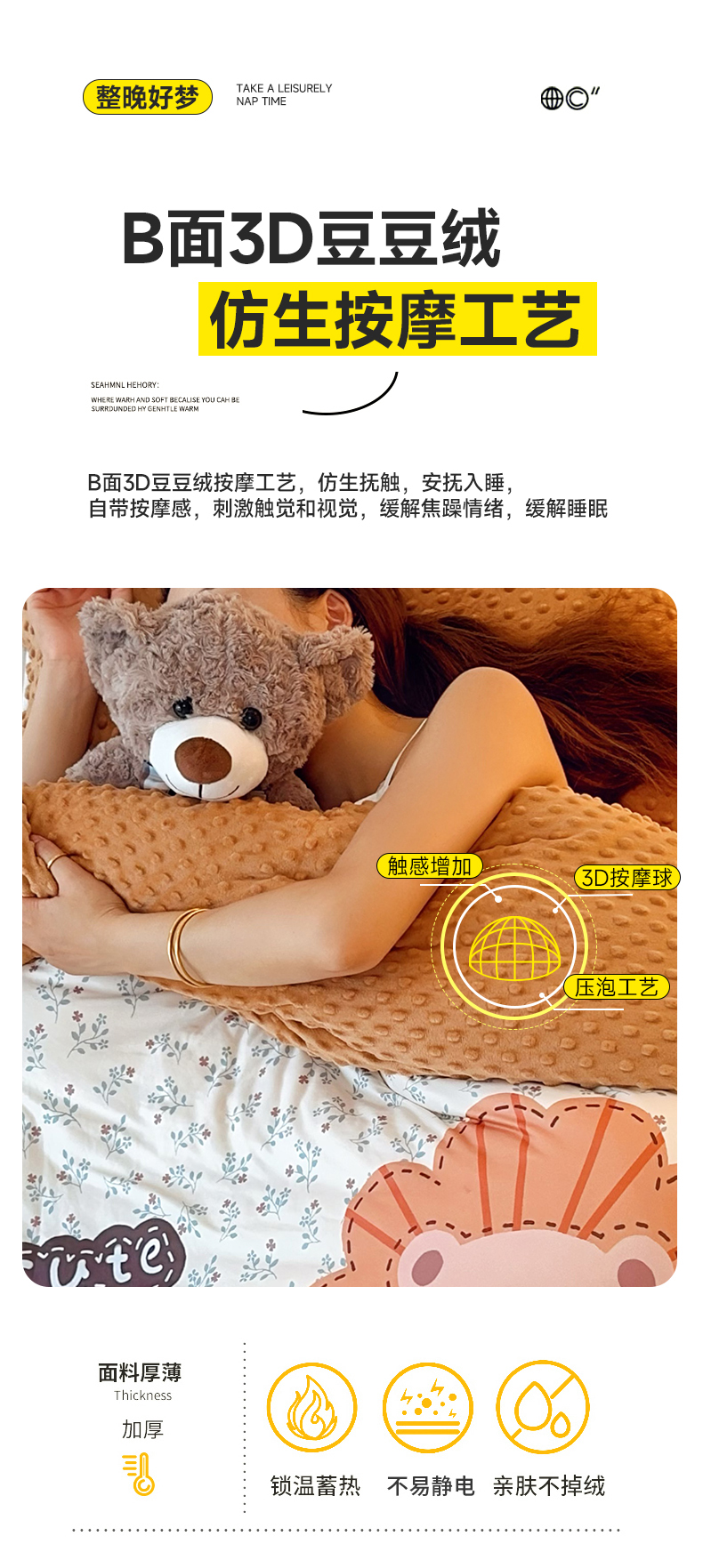 (总)兜米家居 2025新品秋冬母婴针织豆豆绒被纯手工包边卡通立体豆豆绒保暖被子被芯,滑板恐龙,巴拉小熊,花海,花花兔,花小象,幻境,可爱兔子,拉兔兔,兰花小狮子,萌宠小狗,喵喵,小碎花