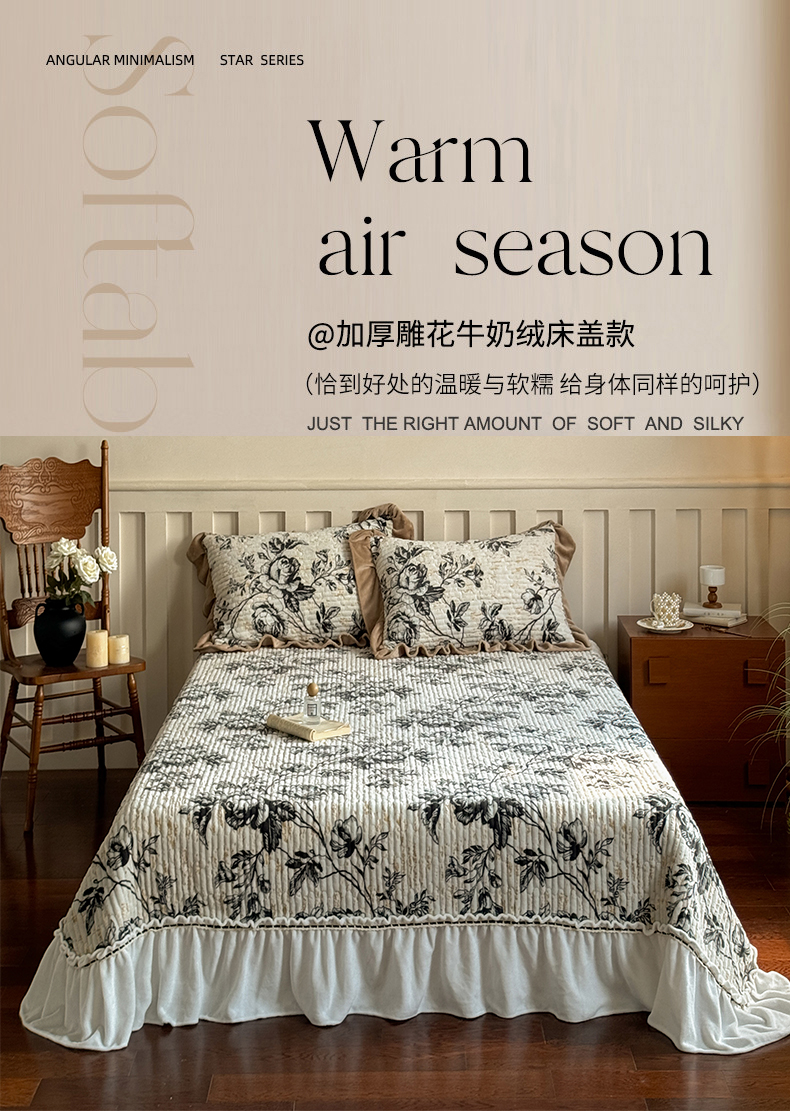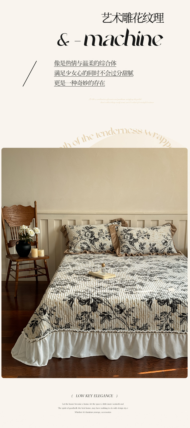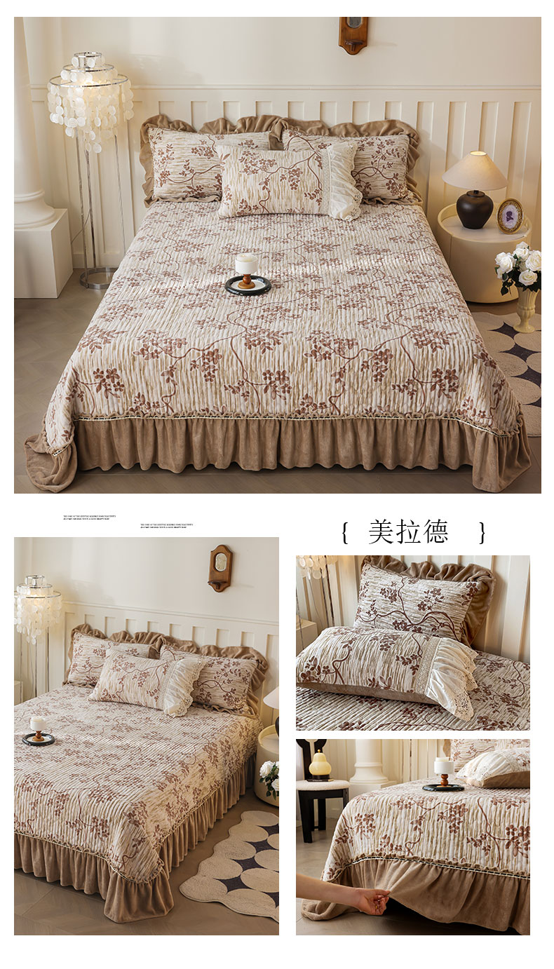 商品名称:(总)花香四季家纺 2025新款全消光牛奶绒夹棉绗缝床盖床垫子单件三件套