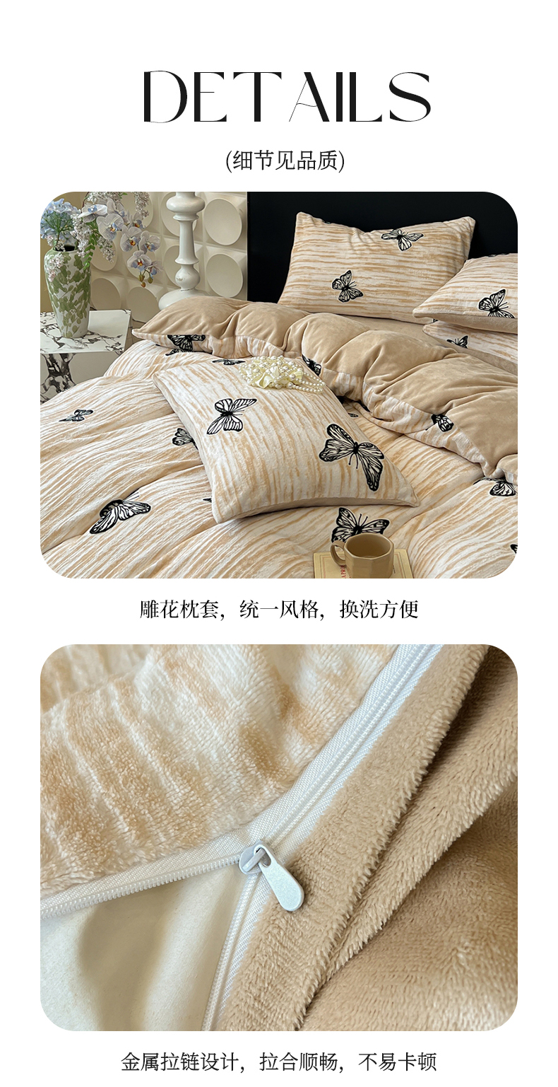 当前位置: 91家纺网 > 商品网购 > 床品套件 > 四件套 > 牛奶绒四件套 > 二八年华 2025新款着色雕花牛奶绒加厚保暖四件套 山茶驼