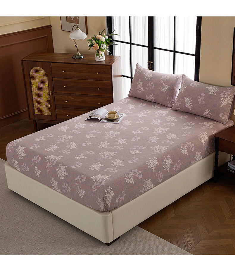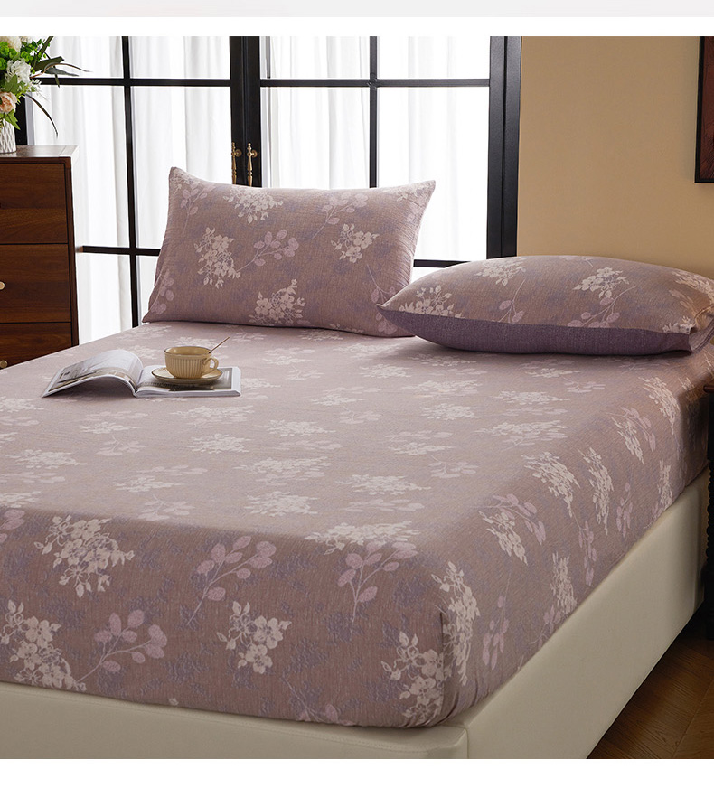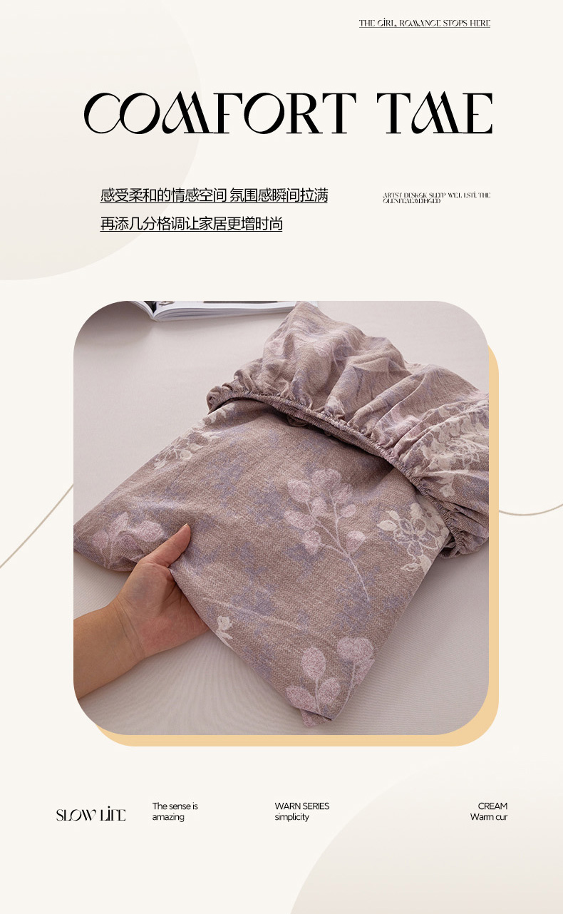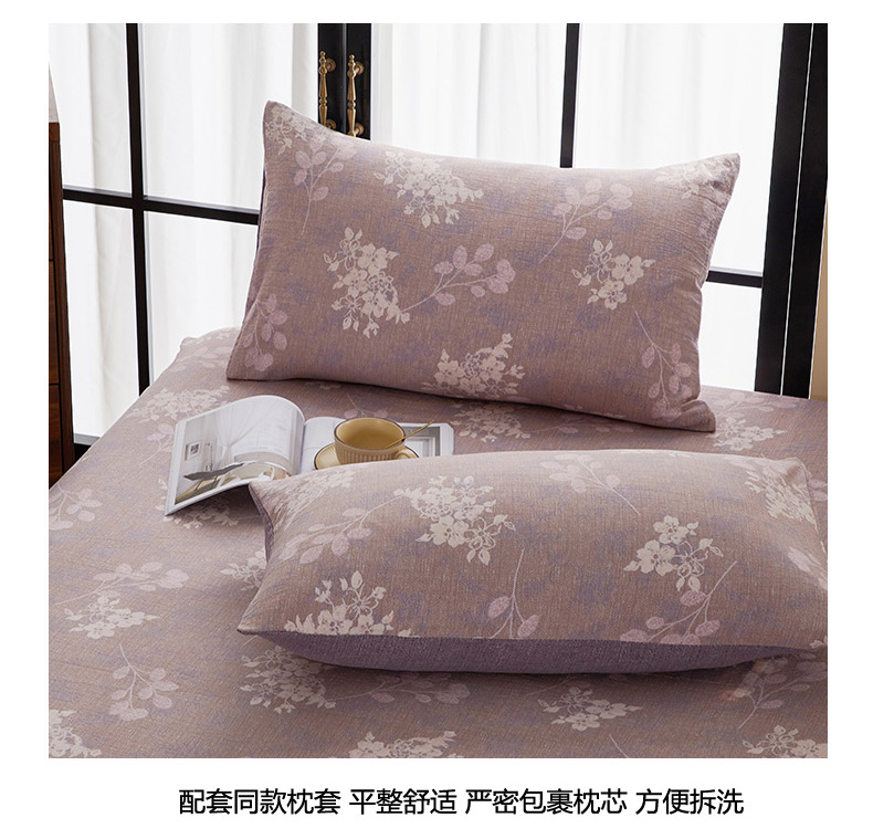 • 91家纺网 家纺一手货源 找家纺 卢赛尔 2025新款高克重皱皱复古原麻单床笠床笠三件套 紫苏槿