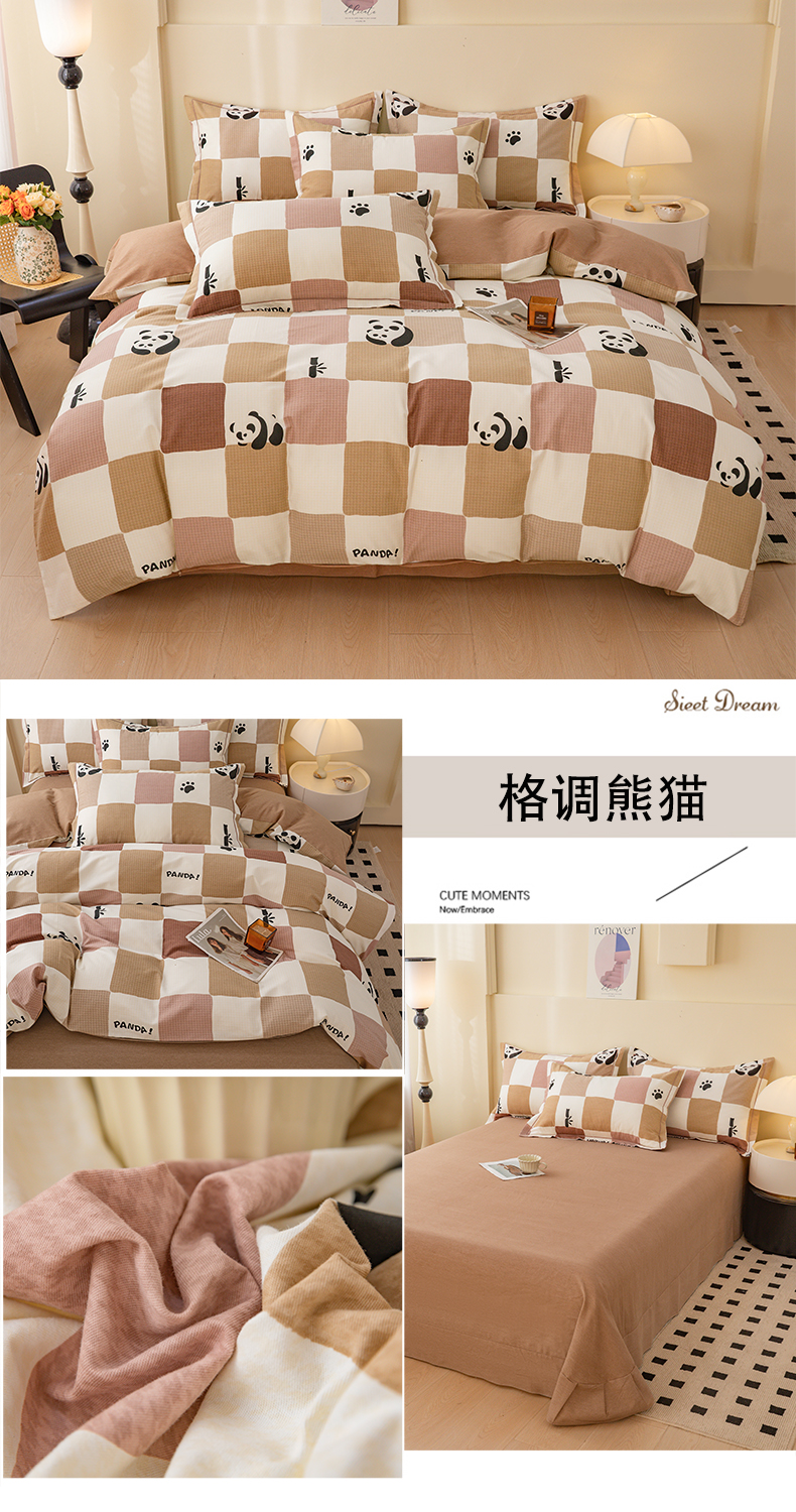 (总)博弈家纺 2025新款亲肤舒适原棉老粗布床单凉席三件套系列,花间,欢乐时光,灰格,可爱熊猫,冷灰,嫩绿,热恋,异域风情
