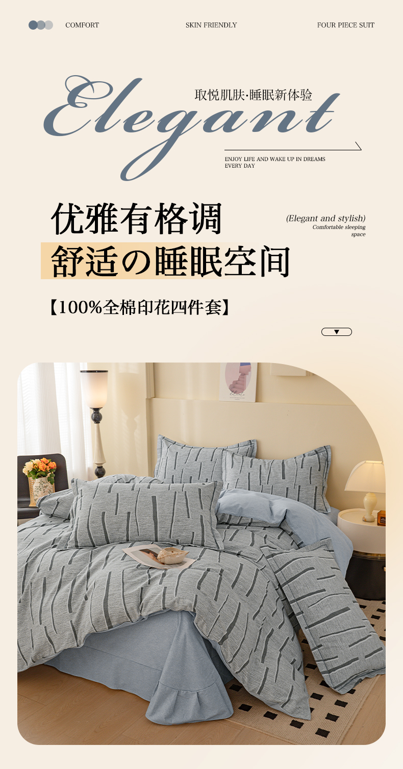 (总)博弈家纺 2025新款100%加厚全棉纯棉四件套喷气磨毛四件套-礼盒装