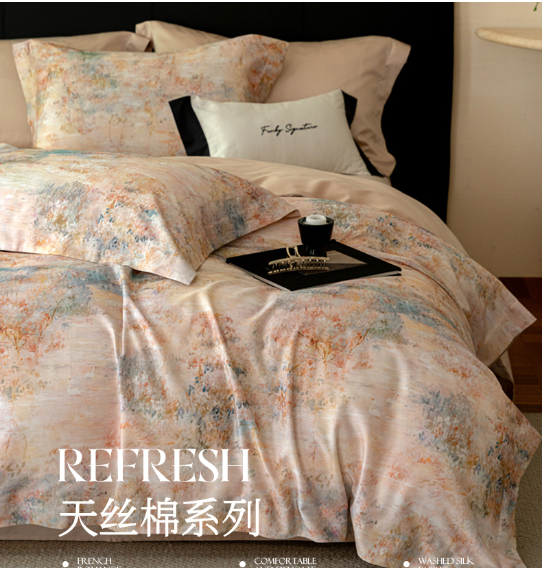 (总)黛舒家居 2025新款天丝棉磨毛花卉四件套,春浔,繁花佩影,罗曼蒂克,花攒绮簇,富郁花开,花枝浅梦,蝶恋花,椿莳,璞野花庭,绮梦花间,梧叶花筑,雾隐白茶