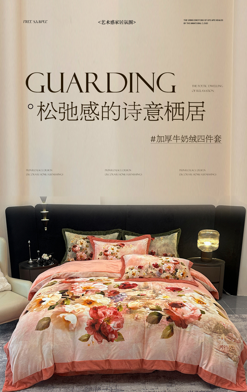 (总)诺梵 2025新款8斤立体雕花牛奶绒四件套_控价标准高于139,加大高于149,花漾-蓝,花漾-绿,温莎-浅粉,温莎-灰,千鸟格-粉,玫瑰之约-黄,梦娜-粉,梦娜-蓝,绒雪花-粉,知意粉,玫瑰之约-粉,兰亭-绿,蒂娜-粉,蒂娜-黄,含香待放-粉,含香待放-灰,花朝梦-粉,洛丽塔-粉,无尽夏-豆沙,无尽夏-蓝,绣球花束-灰,绣球花束-绿,银杏叶,绒雪花-灰