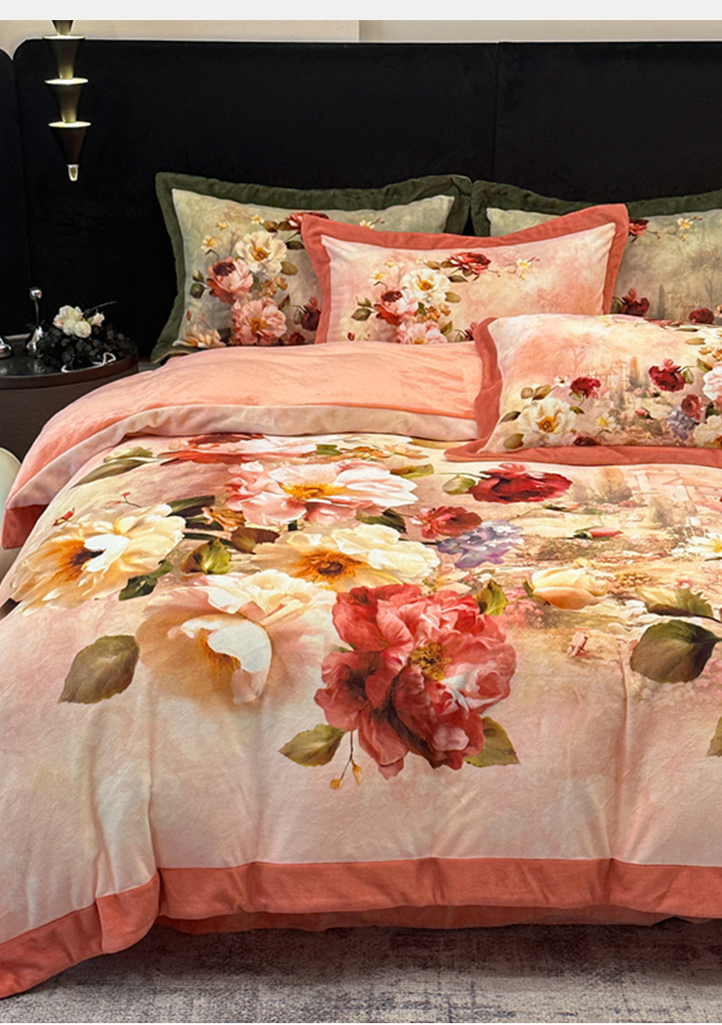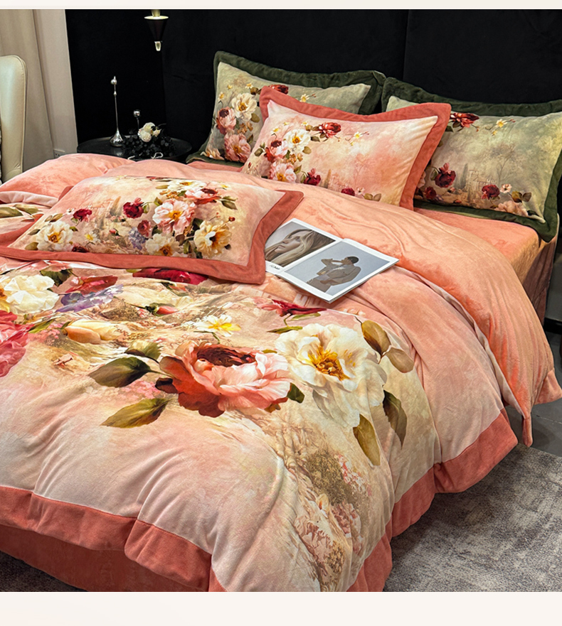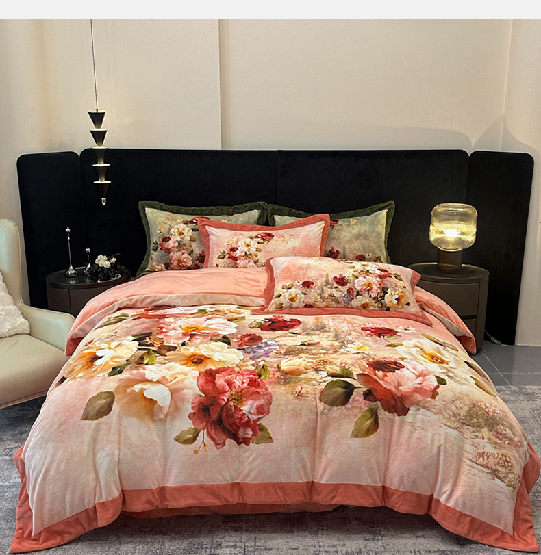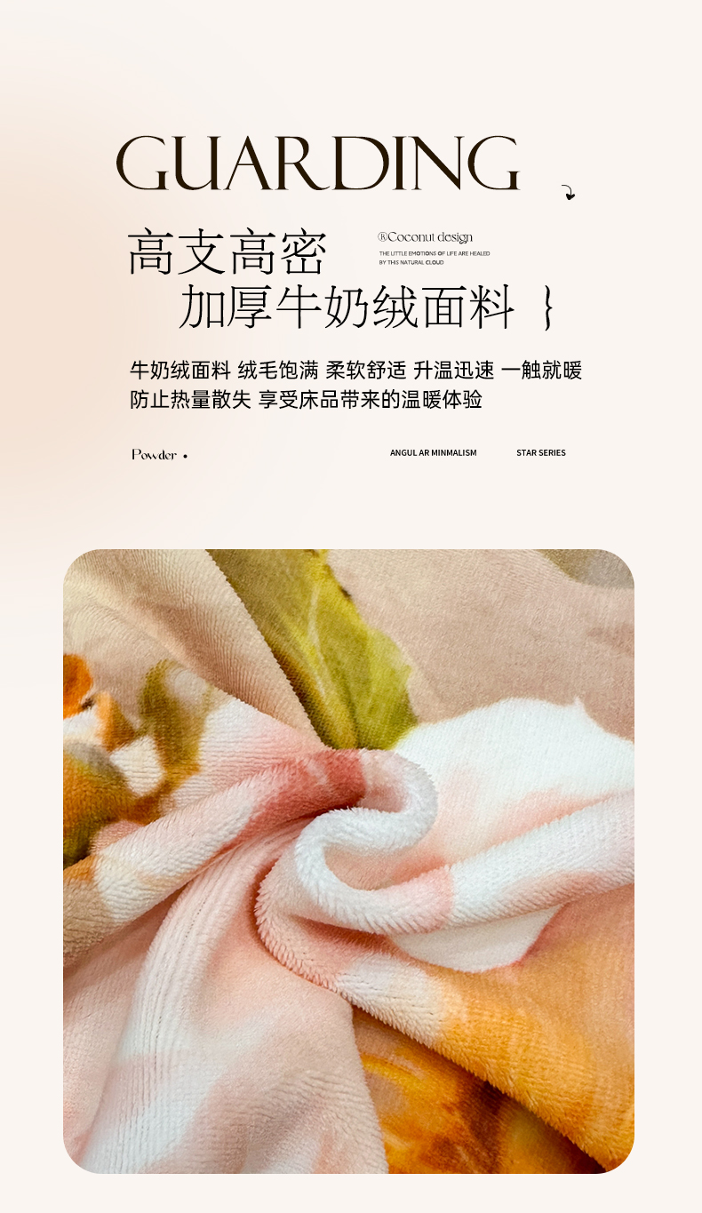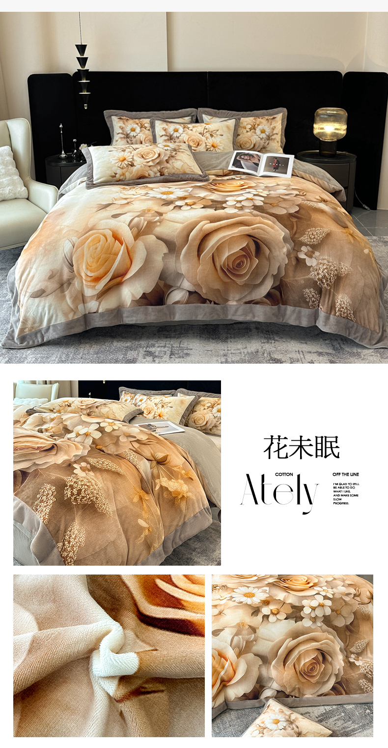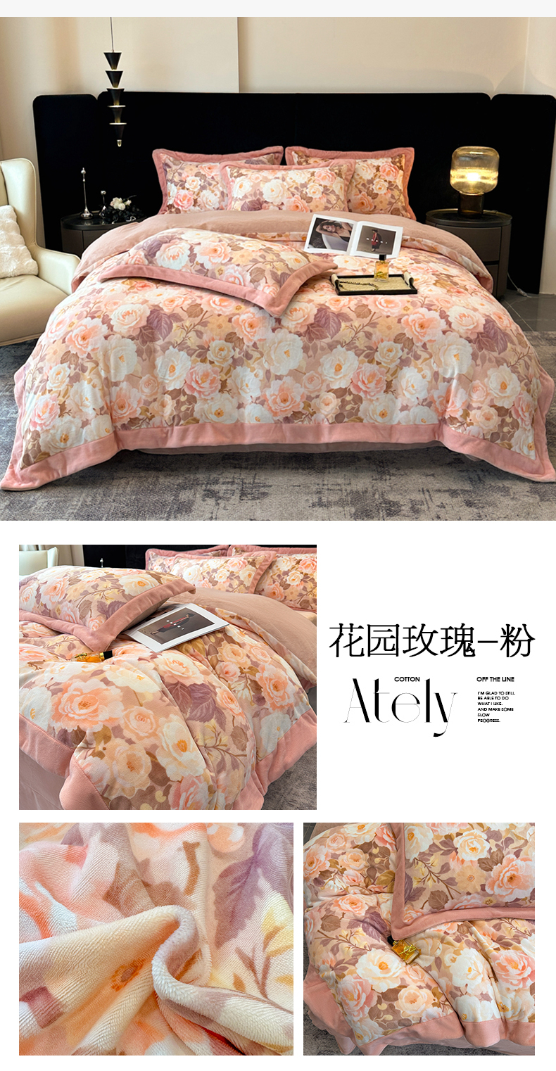 诺梵家纺 2025新款8斤加厚保暖金貂绒牛奶绒印花四件套 向阳花开粉,向阳花开粉