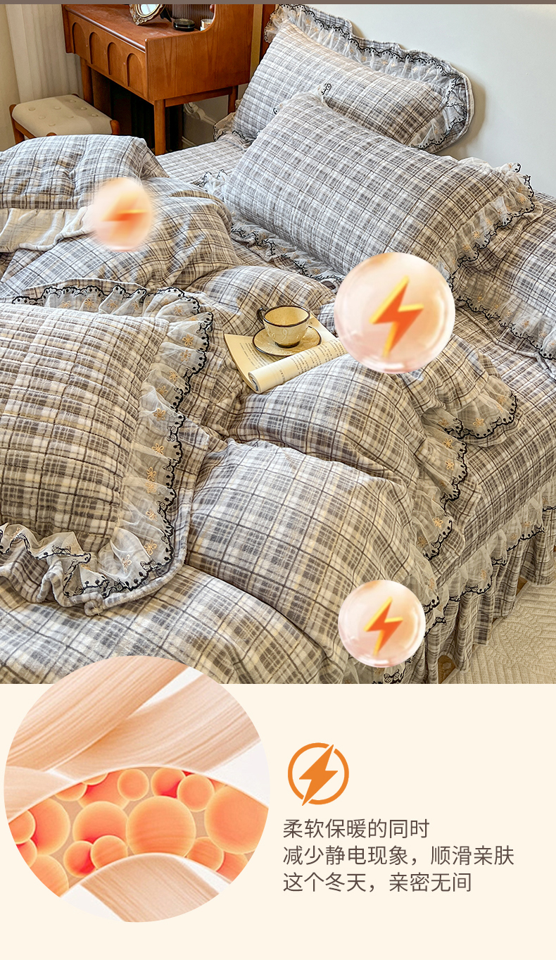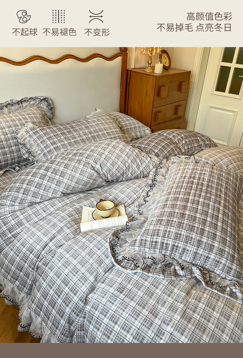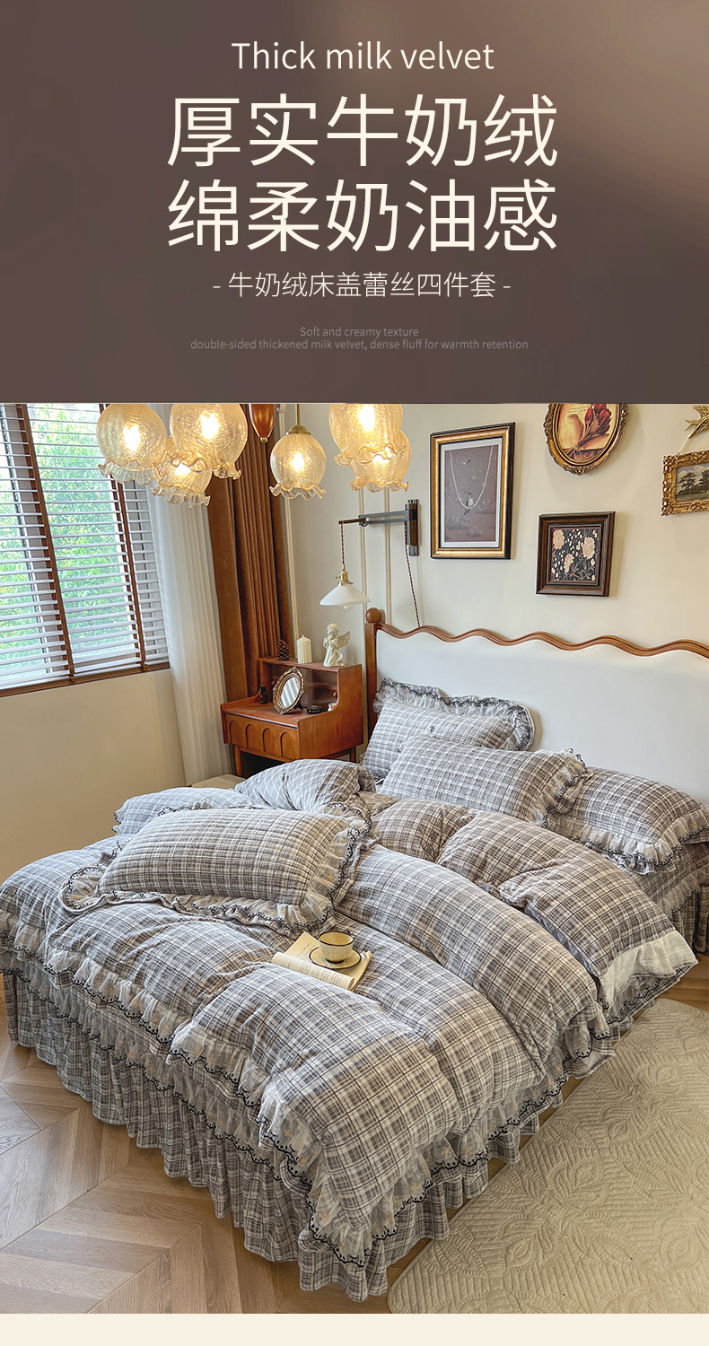 当前位置: 91家纺网 > 商品网购 > 床品套件 > 四件套 > 牛奶绒四件套 > 网红馆(ck家纺) 2025新款高克重牛奶绒床盖四件套-米娅 米娅-灰