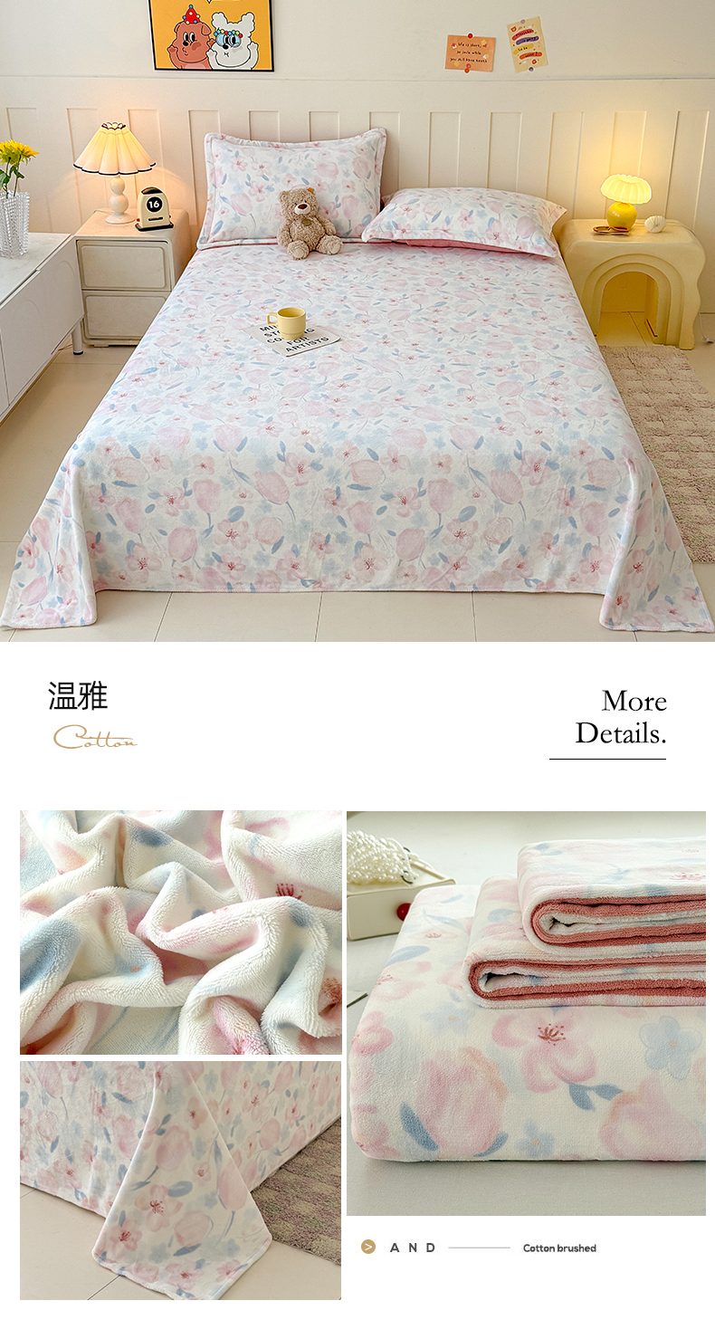 商品名称:金盛纺 2025新款高克重牛奶绒印花系列单床单(可定制) 皇室贵冠-粉