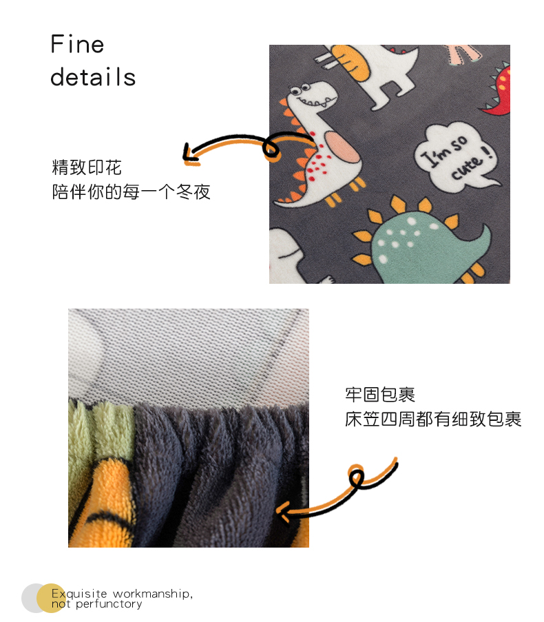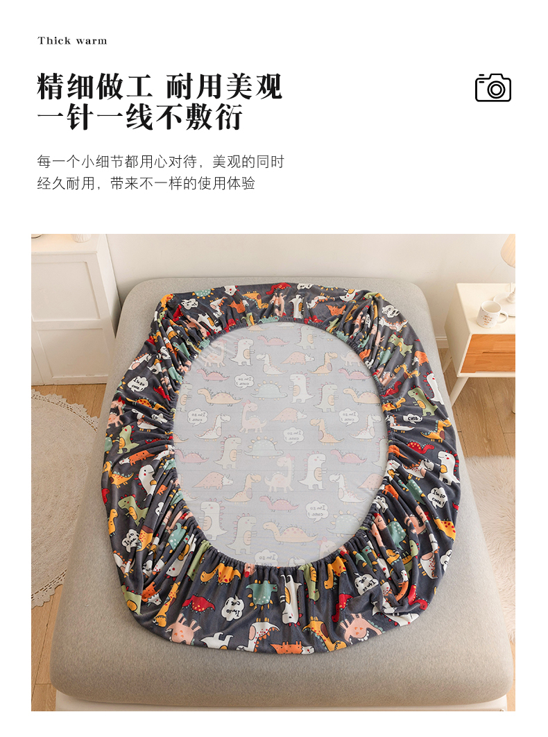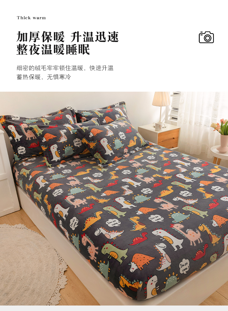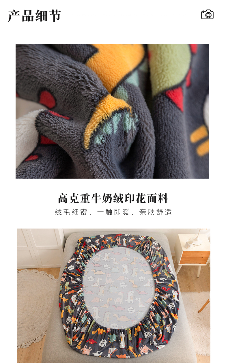 商品名称:金盛纺 2025新款高克重牛奶绒印花系列单床笠(可定制) 恐龙王国