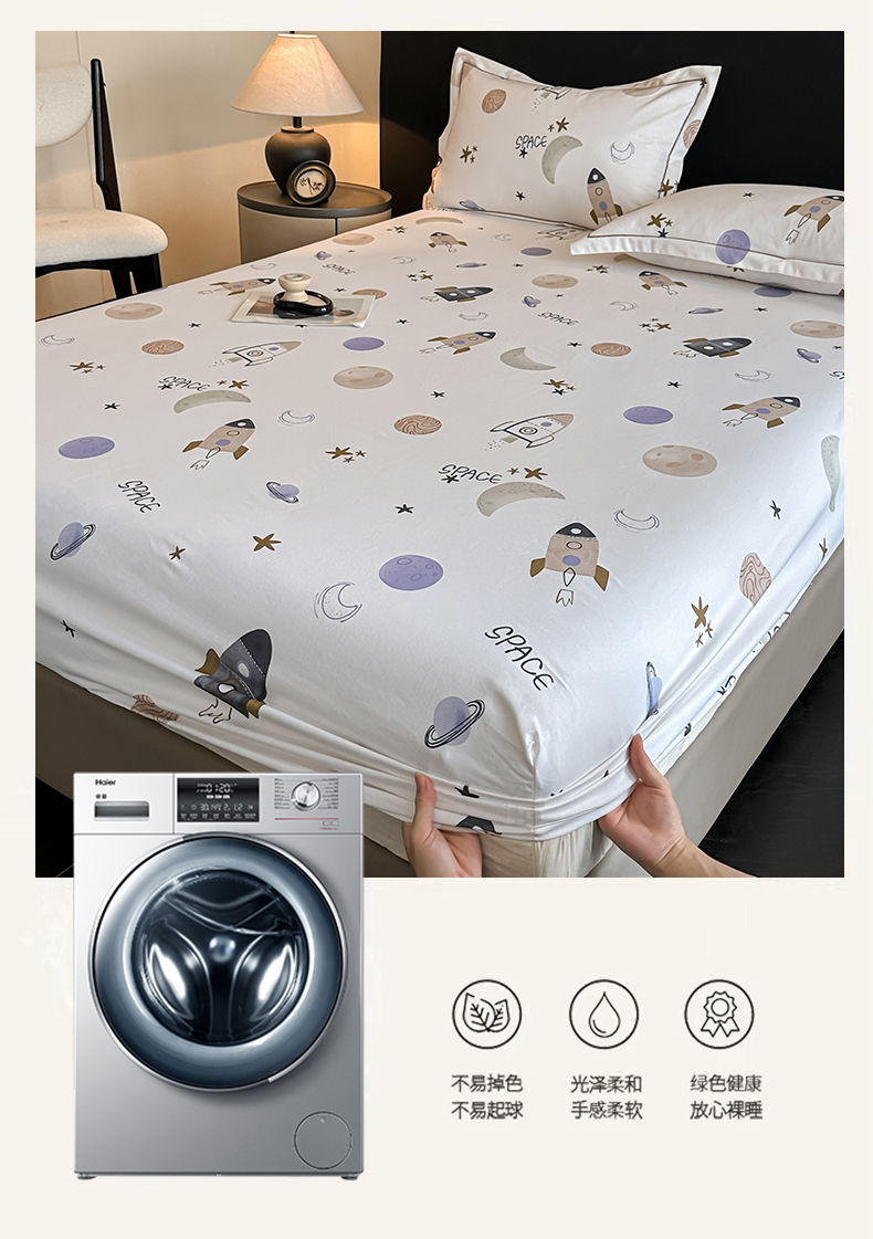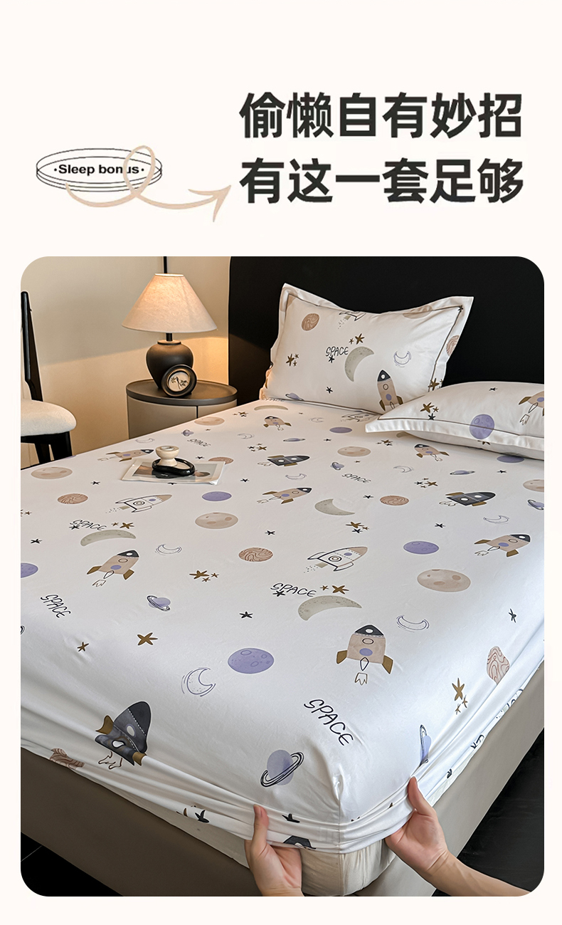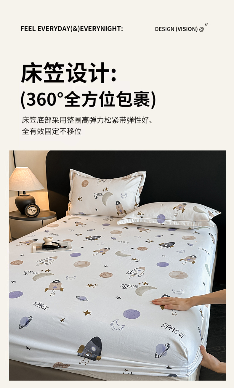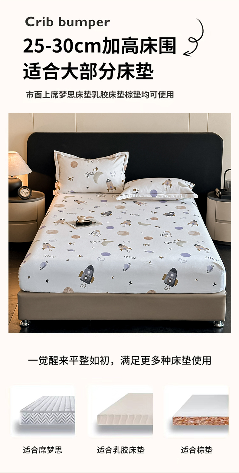 商品名称:大柏树 2025新款亲肤舒适全棉纯棉磨单床笠 床笠单件 遨游太空