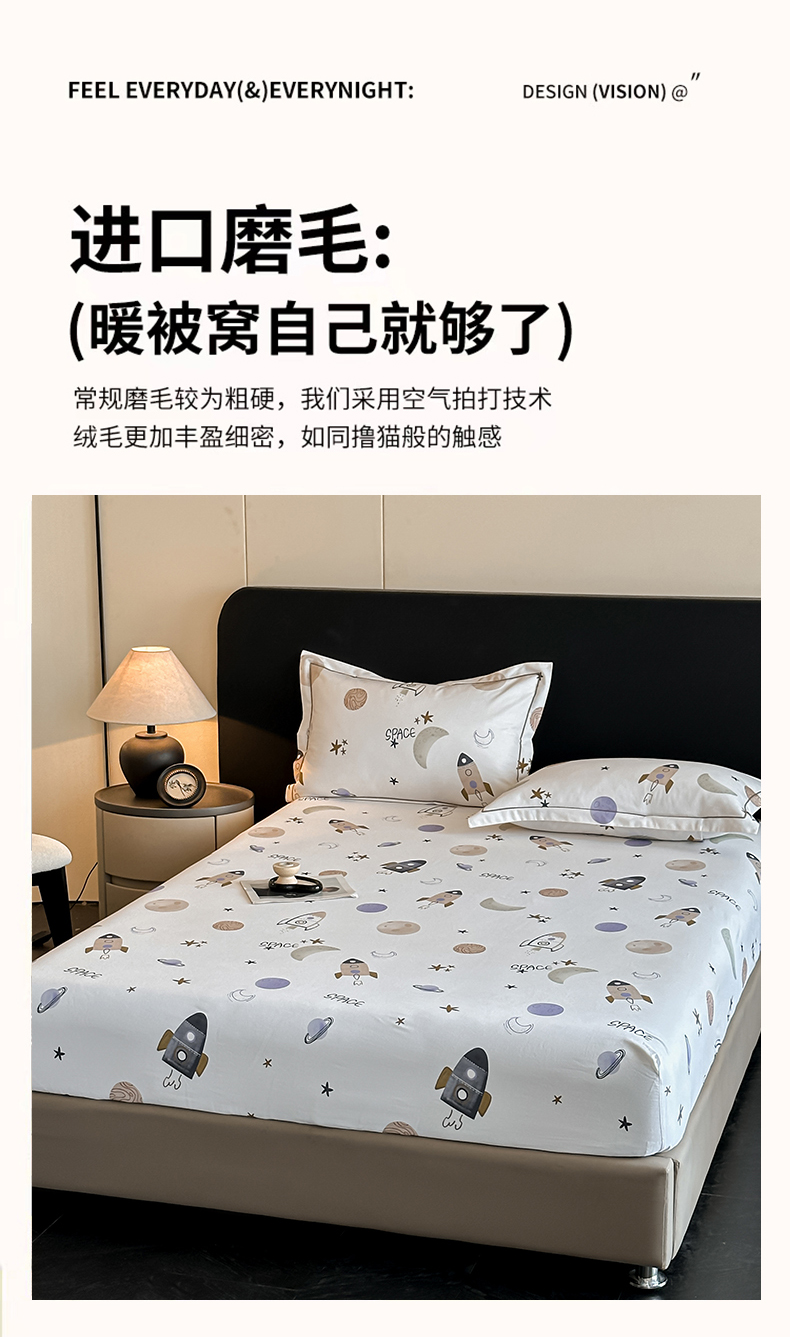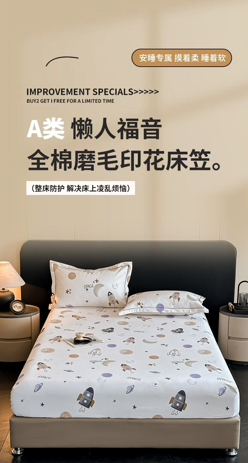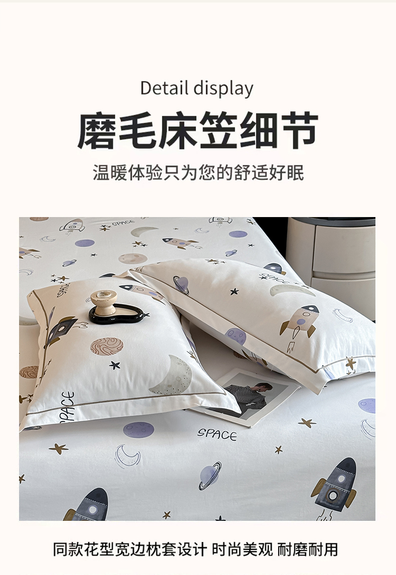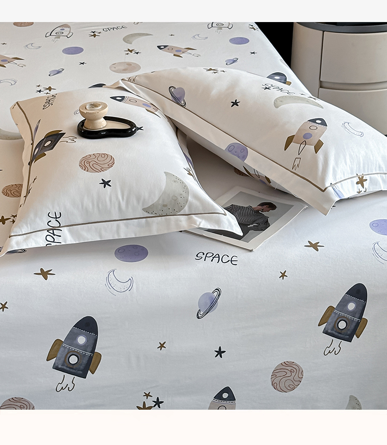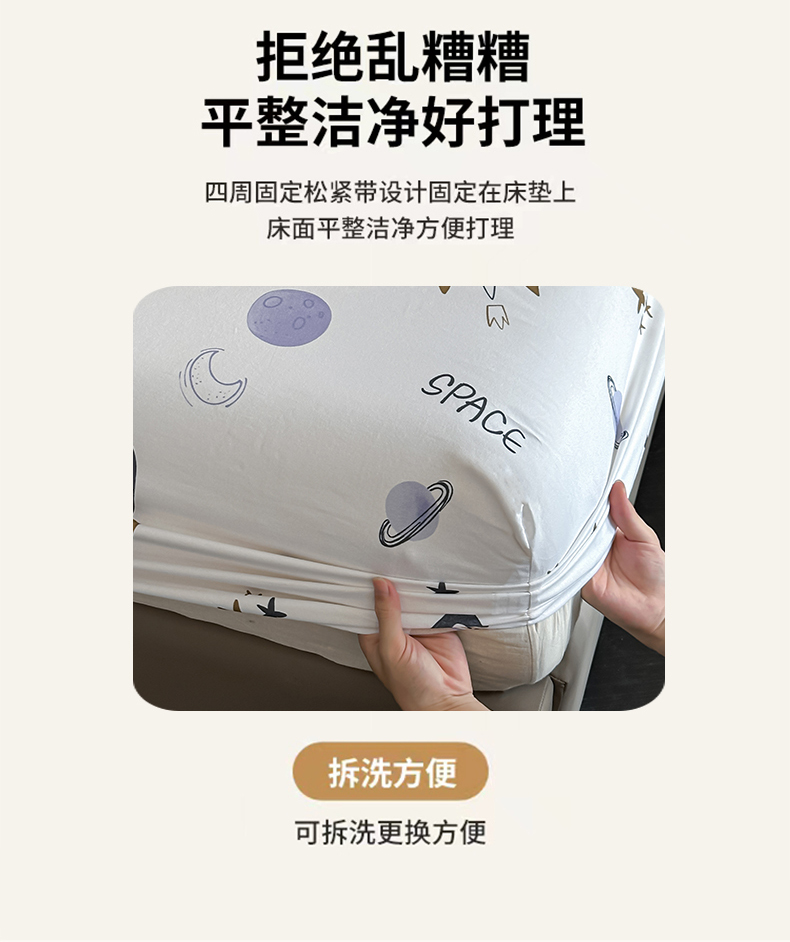 商品名称:大柏树 2025新款亲肤舒适全棉纯棉磨单床笠 床笠单件 遨游太空