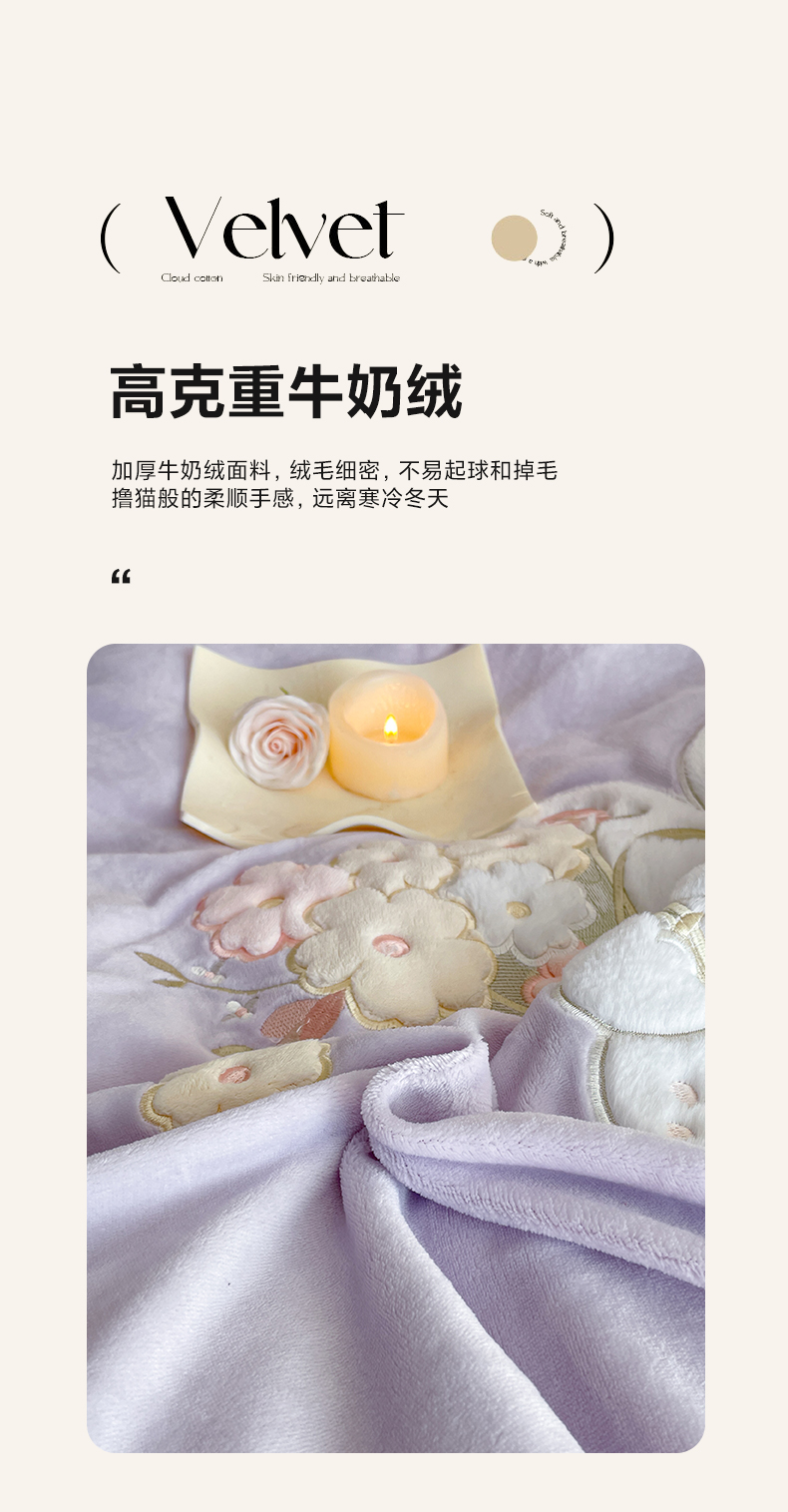 商品名称:畅畅家纺 2025新款轻奢高档冬季工艺款牛奶绒毛巾绣床单床笠四件套 梦境-浅紫