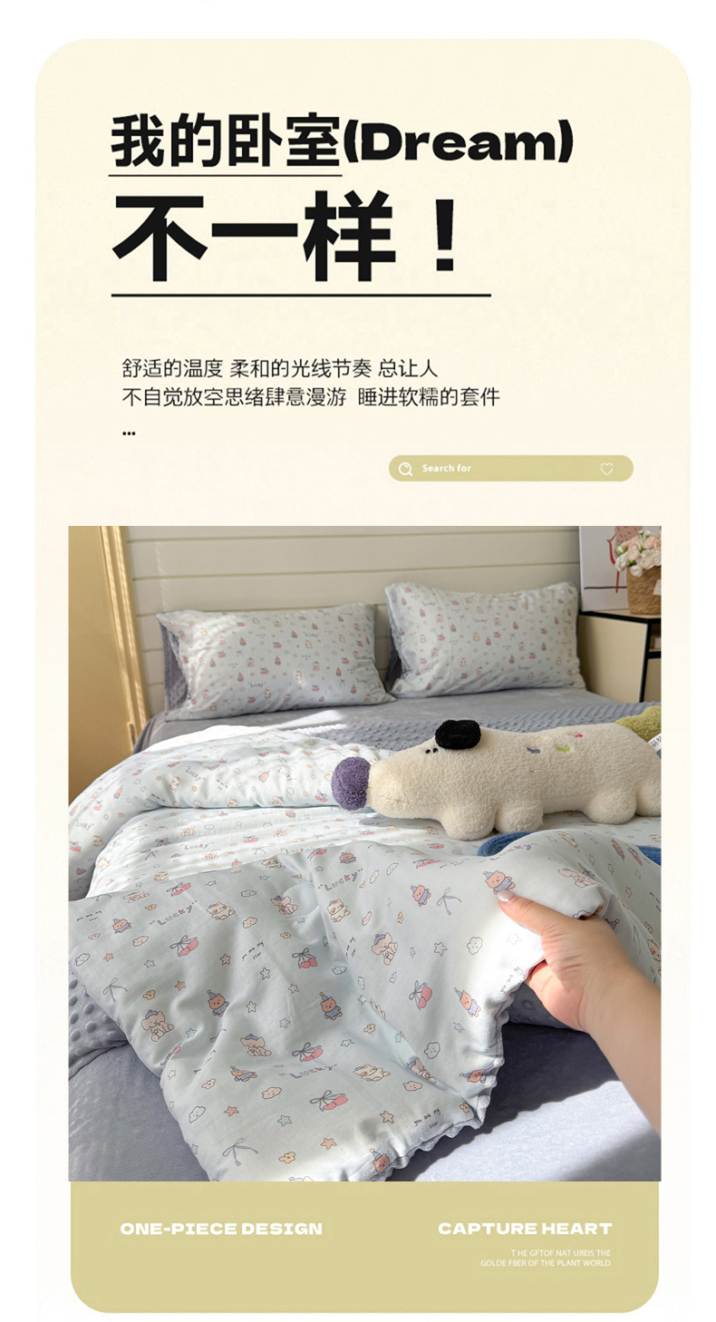 (总)麦伦家居 2026年春夏新款全棉纯棉有氧双层纱印花四件套-第二波,组合图仅供展示-不可下单,白露,花香粉,萌星粉,木马乐园,俏皮熊猫,甜梦汪汪,兔兔茉莉,心动狗狗,云锦兔-粉,云锦兔-蓝