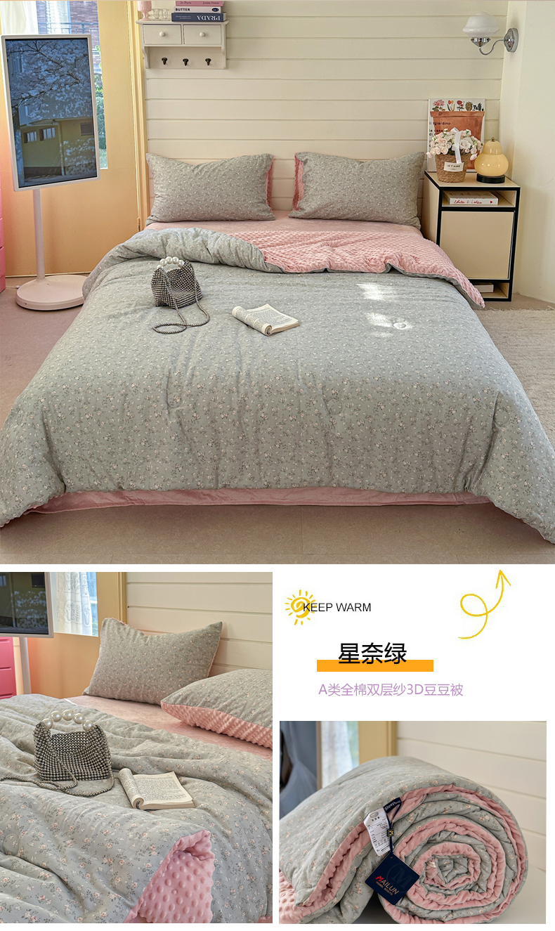 • 91家纺网 家纺一手货源 找家纺 (总)麦伦家居 2025多功能床品全棉纯棉A类有氧双层纱+豆豆绒四件套荷叶边系列,组合图仅供展示不可下单,星星人,童梦木马,糖炒栗子,花田粉兔,白月光,桃夭夭,豹纹猫咪,空谷幽兰,晚秋,花棠,莫奈花园,蒂芙尼-粉,青芜,花样年华,椿野