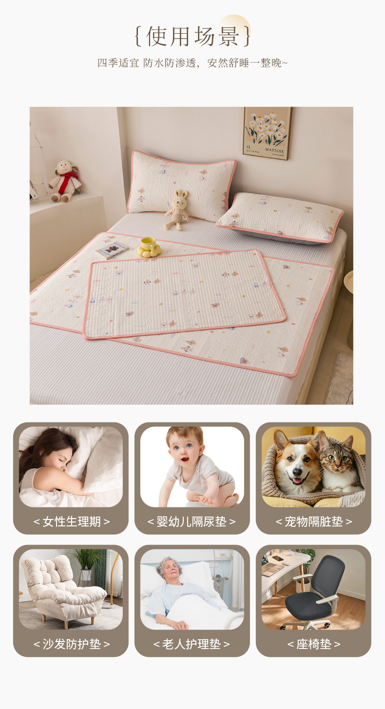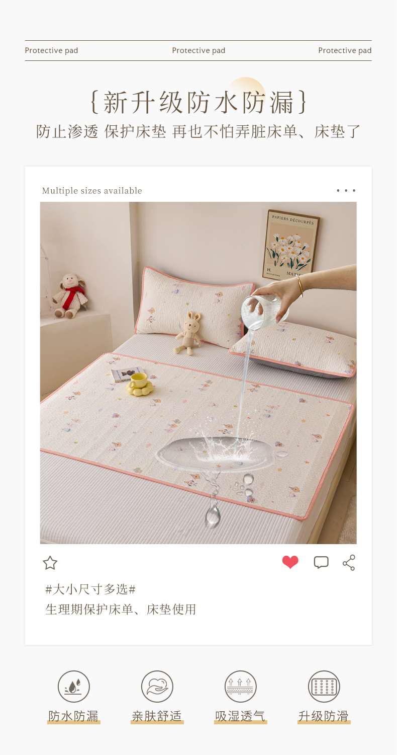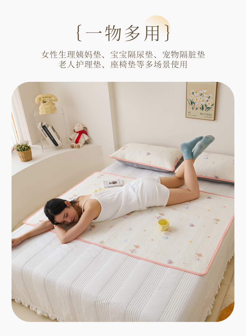当前位置: 91家纺网 > 商品网购 > 床垫/床褥 > 普通床垫 > 拾小柒 2025年新款全棉双层纱隔脏姨妈垫护理垫床护垫 豆豆好朋友-防水款