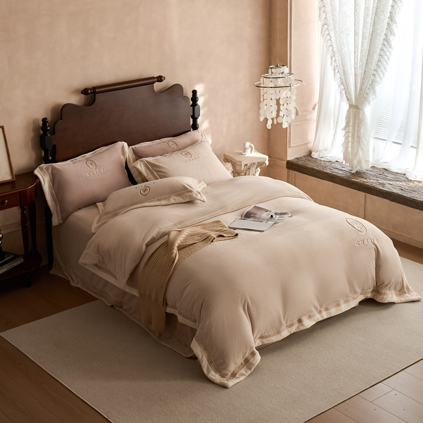 商品名称:蓝梦 2025新款270g全消光牛奶绒四件套-克莱尔 克莱尔-梦想粉