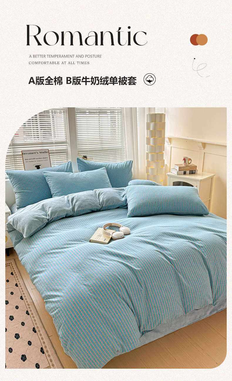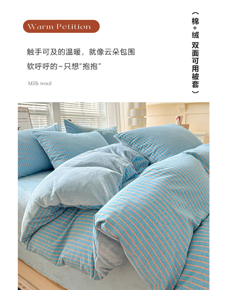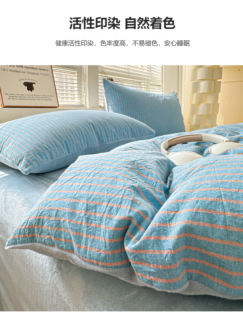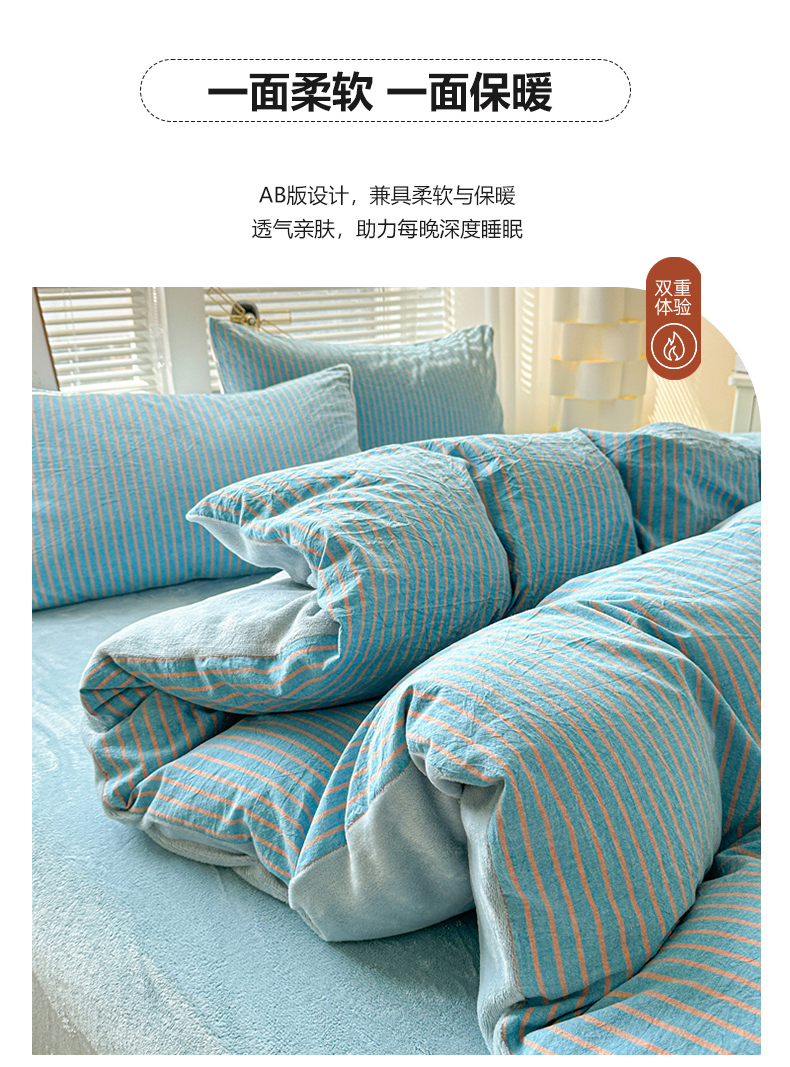 • 91家纺网 家纺一手货源 找家纺 柠萌家居 2025新款无印良品风双拼全棉色织水洗棉加牛奶绒单品被套简约风全棉拼牛奶绒单被套 棉+绒蓝咖条