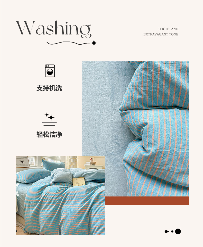 (总)柠萌家居 2026新款色织水洗棉四件套单被套,粉极细条,粉紫条,黄咖条,灰极细条,蓝咖条,绿极细条,绿紫条,米极细条,驼红条