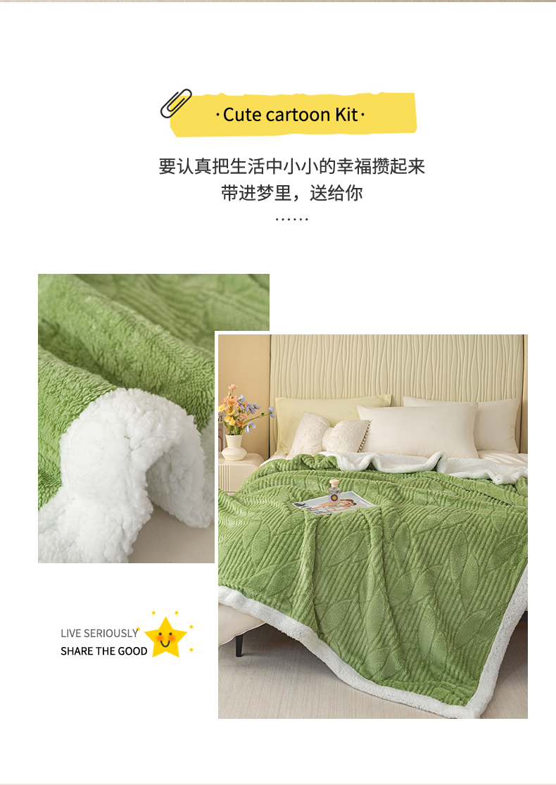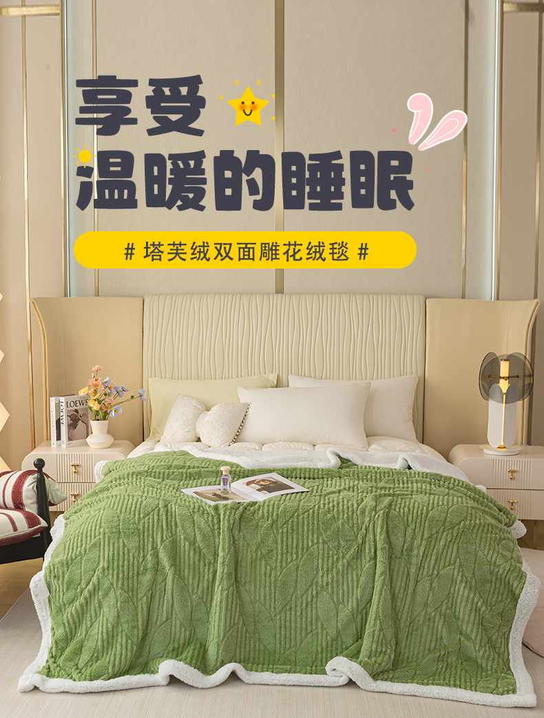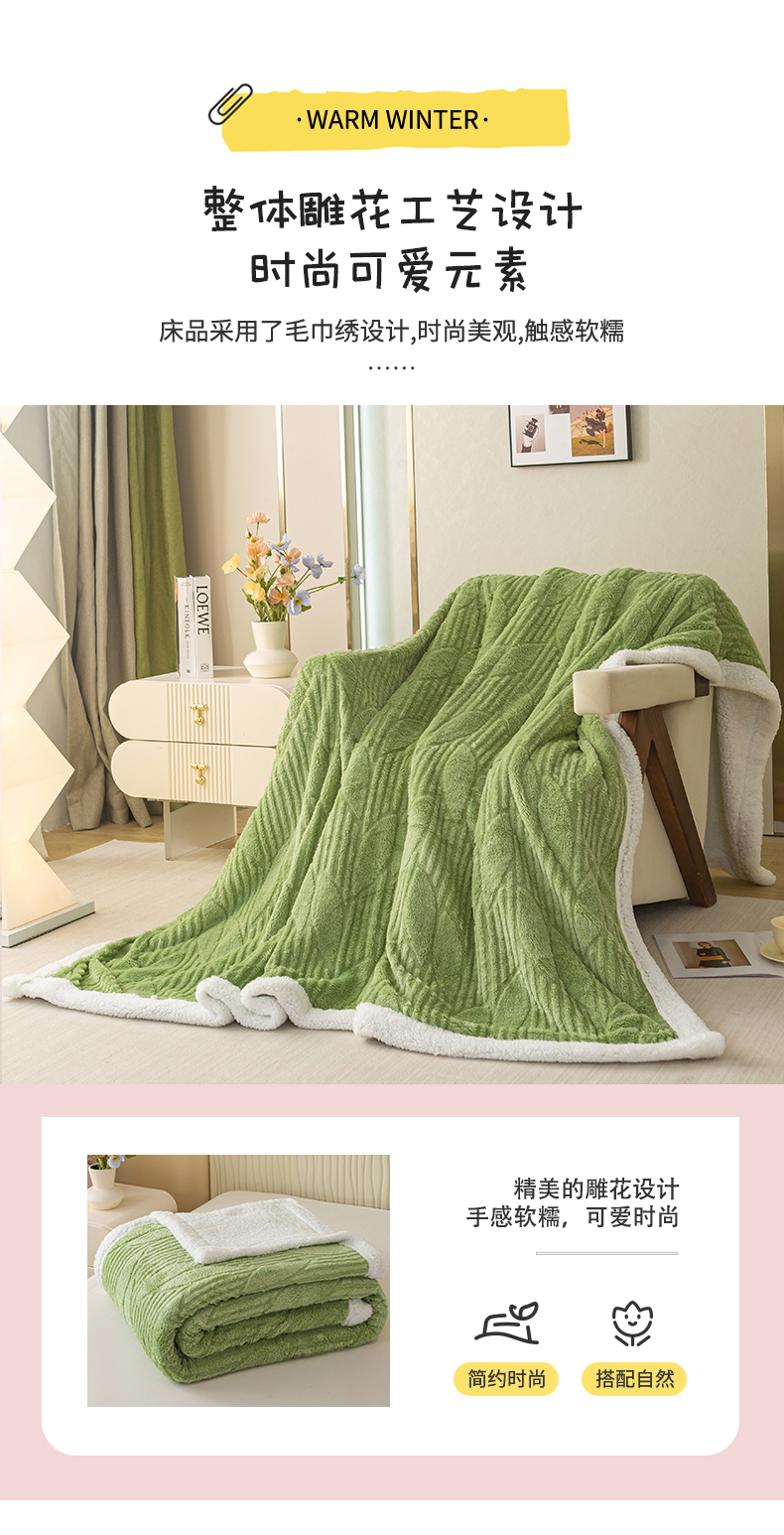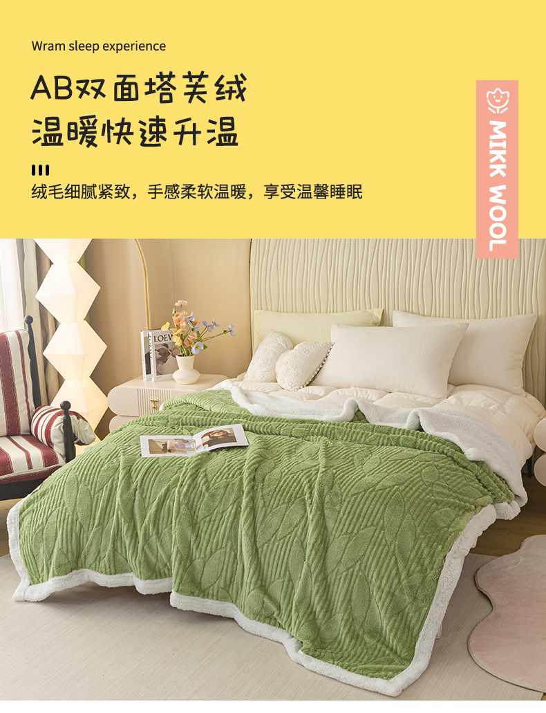 当前位置: 91家纺网 > 商品网购 > 毛毯休闲毯绒毯 > 毛毯 > 佳居缘 【双面绒-叶子】 2025加厚保暖羊羔绒毛毯双层塔芙绒毯子跨境专供外贸出口定制 叶子-绿