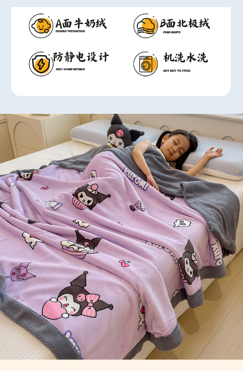 商品名称:云恋家纺 2025新款儿童卡通加厚牛奶绒北极绒双层绒毛毯 紫色库洛米