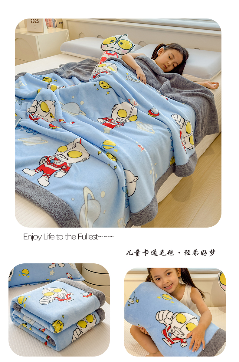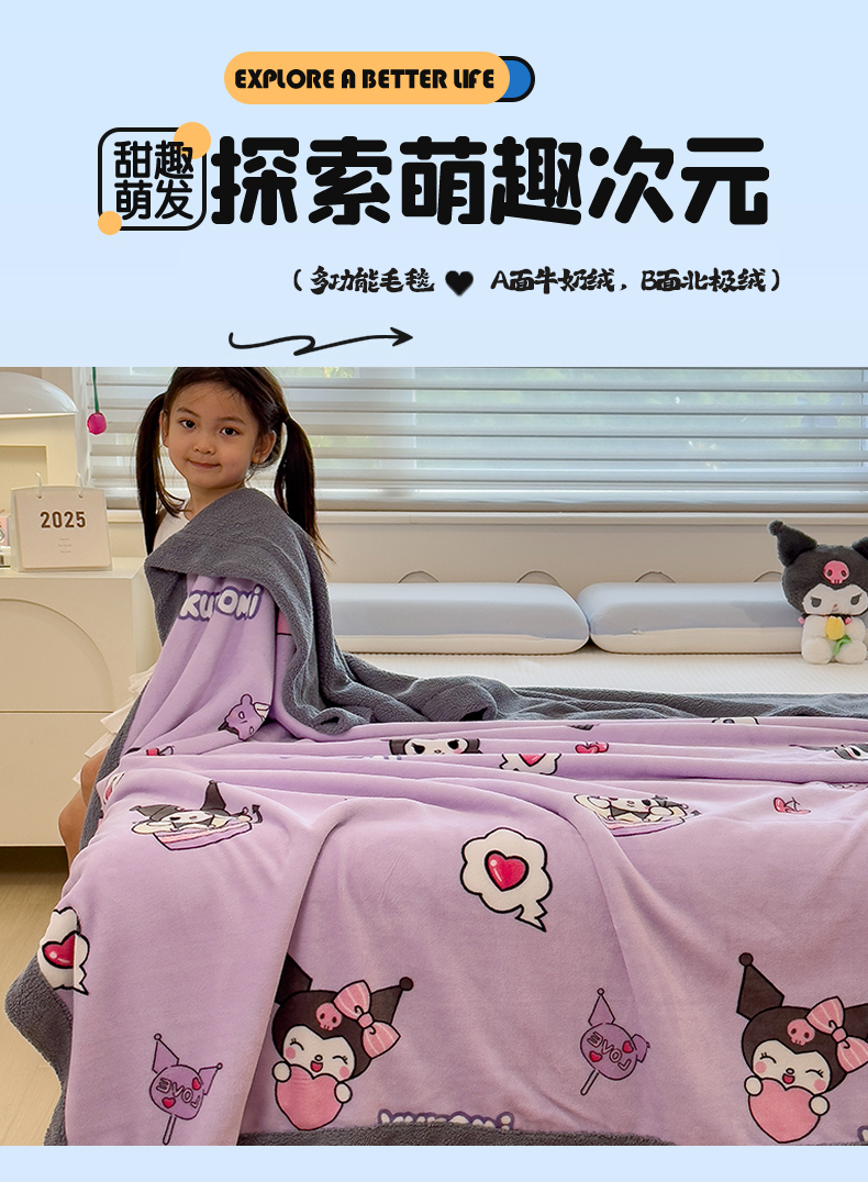 云恋家纺 2025新款儿童卡通加厚牛奶绒北极绒双层绒毛毯 紫色库洛米