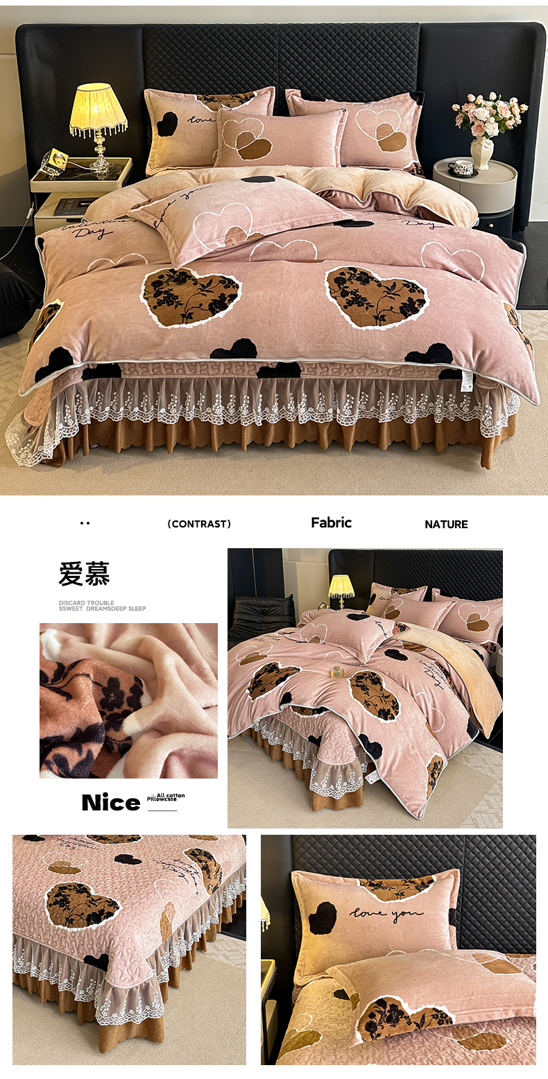 栩裕纺织 2025新款加厚牛奶绒床盖四件套 爱慕