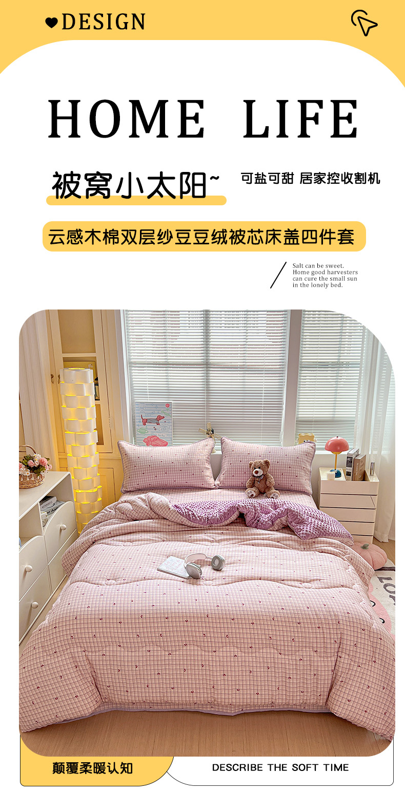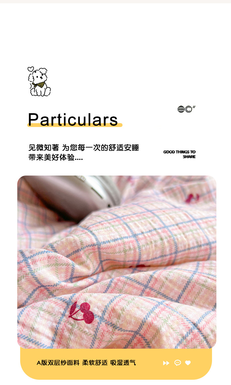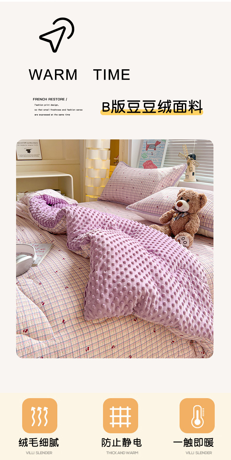 当前位置: 91家纺网 > 商品网购 > 床品套件 > 四件套 > 其它四件套 > 暖芯优选 2025新款木棉双层纱ins少女心可爱系加厚豆豆冬被四件套床盖三件套暖梦系列(小红书推荐) 格子樱桃