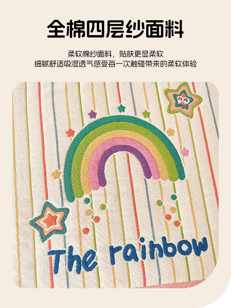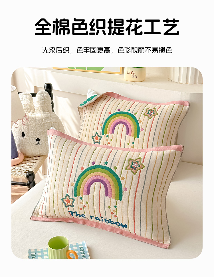 沐瑟家纺 2025新款绵柔儿童纯棉纱布儿童枕巾 彩虹星