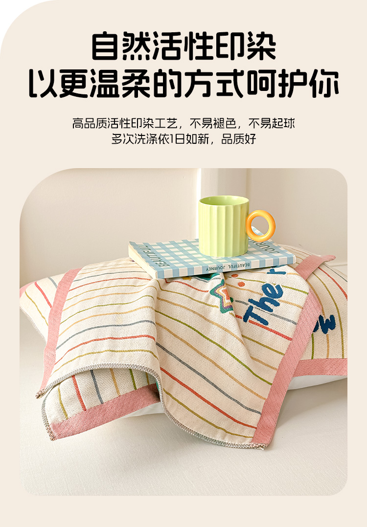 (总)沐瑟家纺 2026新款亲肤舒适全棉四层纱布枕巾-星星和心情系列,心情-粉色,心情-灰蓝,心情-卡其,星星-黄色,星星-灰色,星星-蓝色,星星-紫色,组合图仅做展示不可下单
