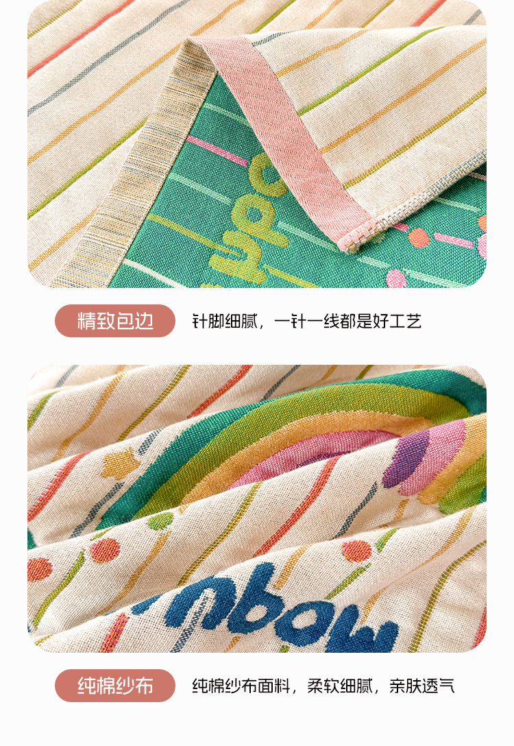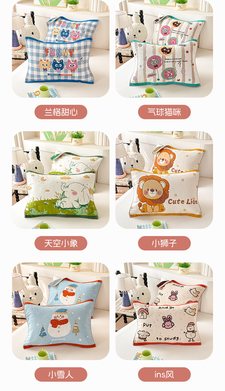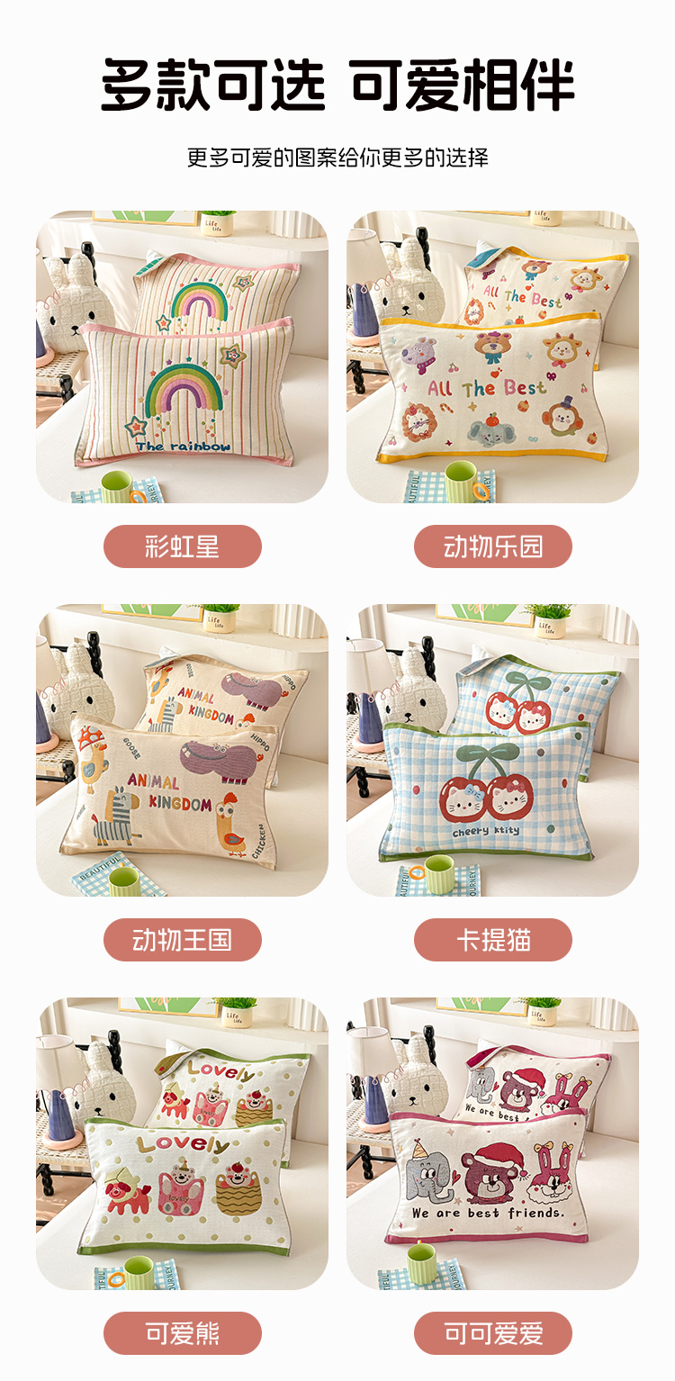 商品名称:沐瑟家纺 2025新款绵柔儿童纯棉纱布儿童枕巾 ins风
