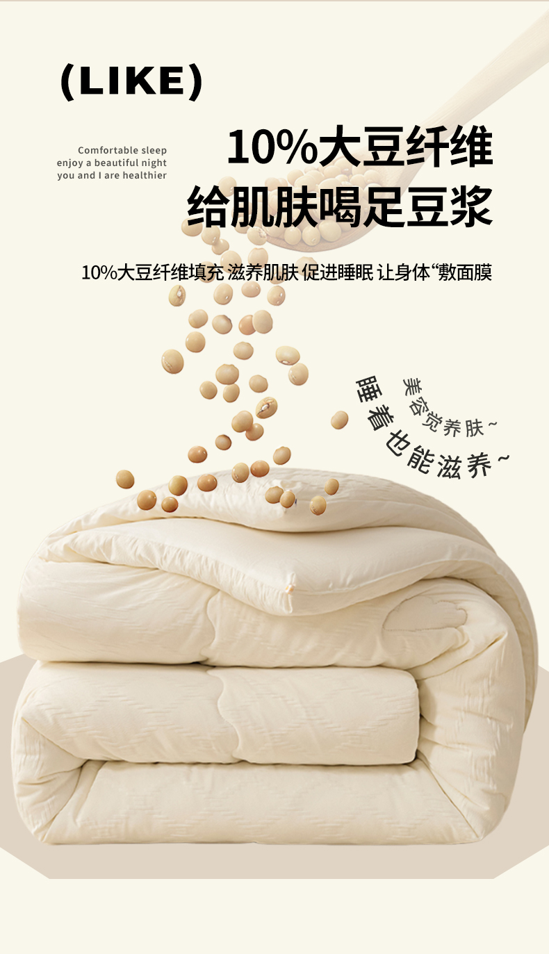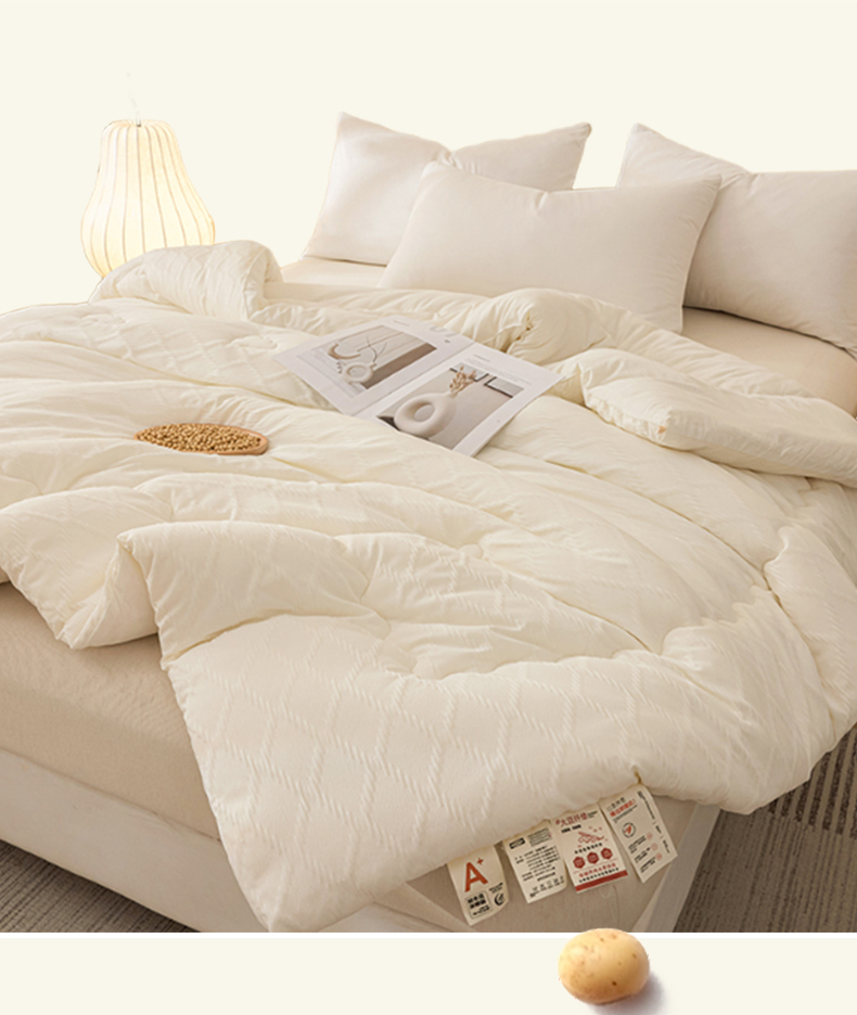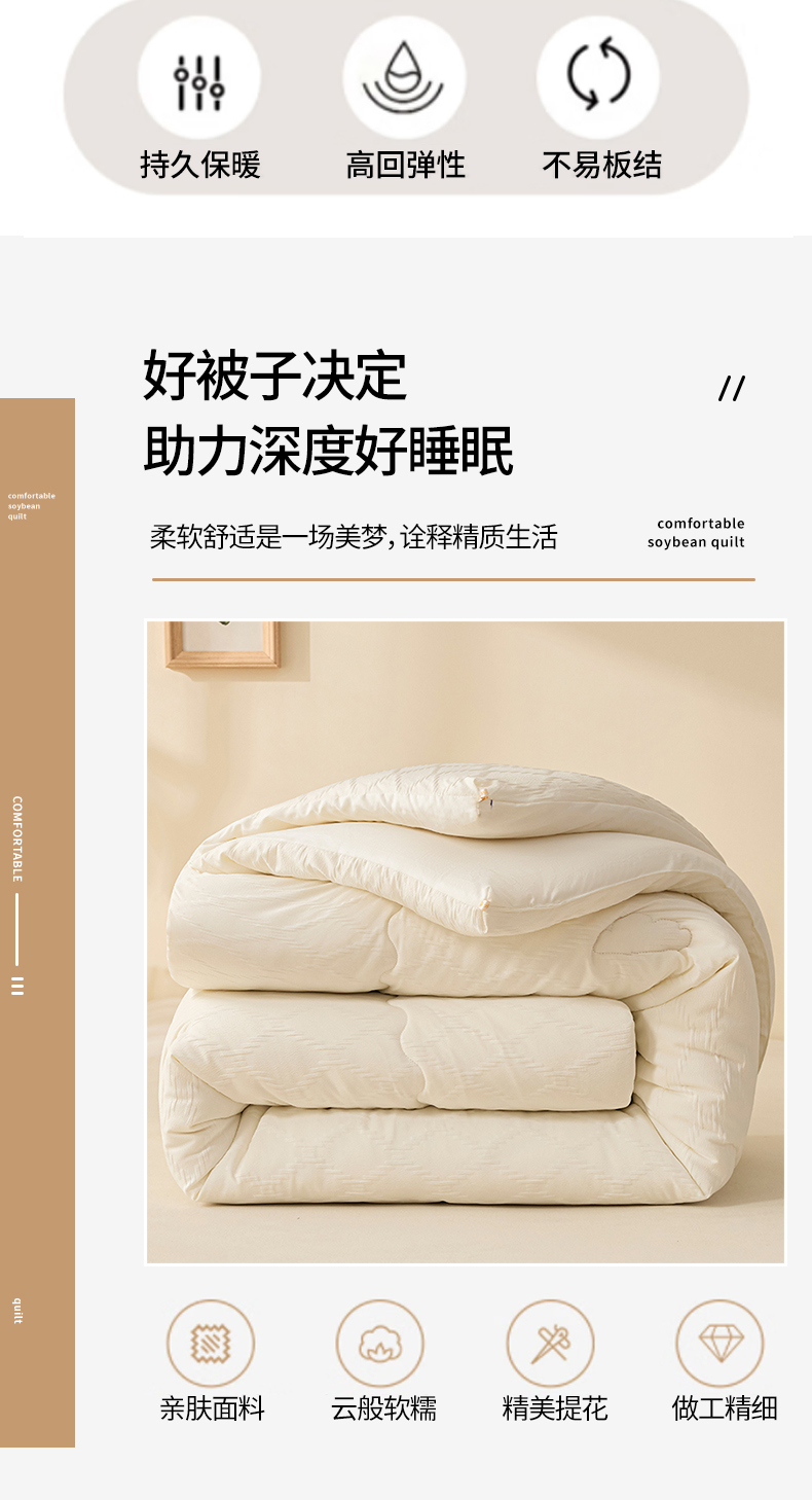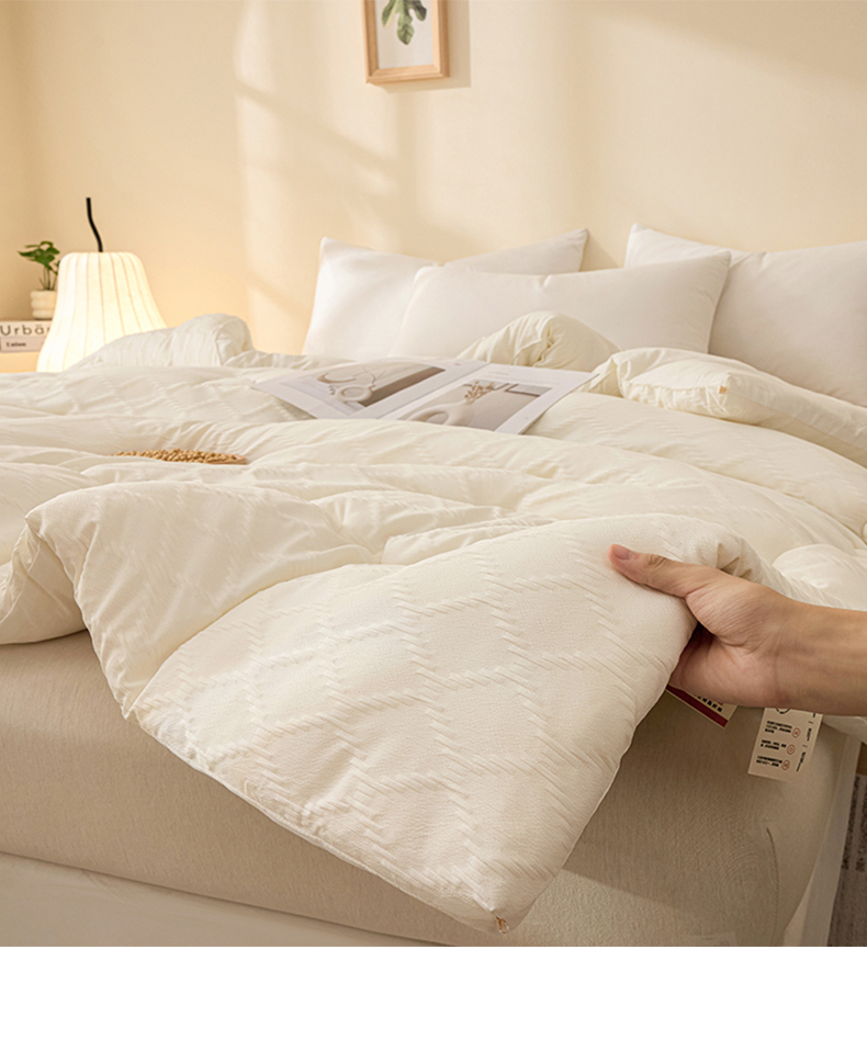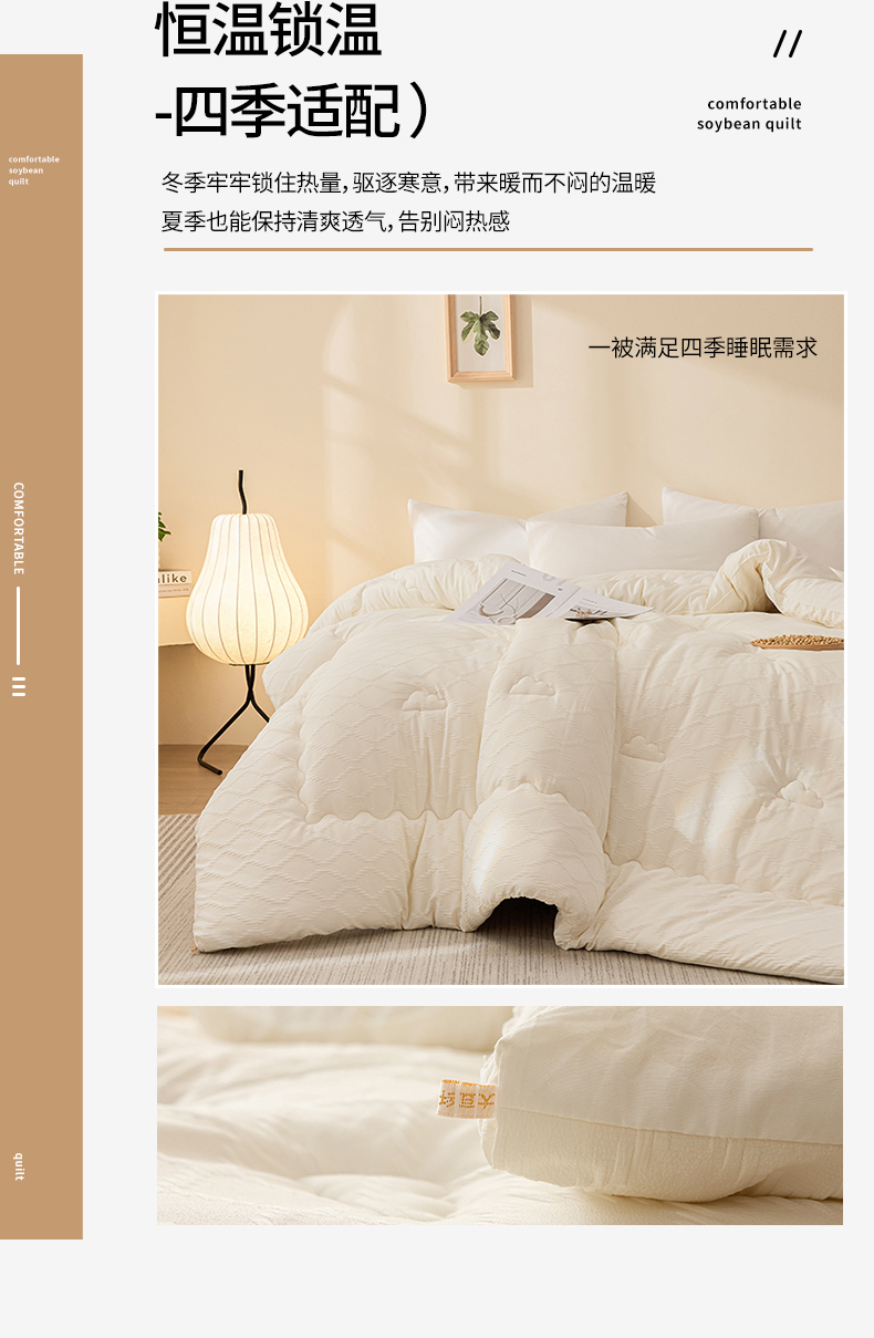 爱彼家纺 2025新款直播热卖A类菱形格提花大豆被春秋被冬被 菱形提花大豆被-米白