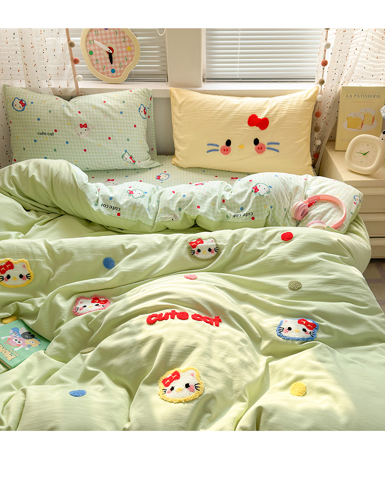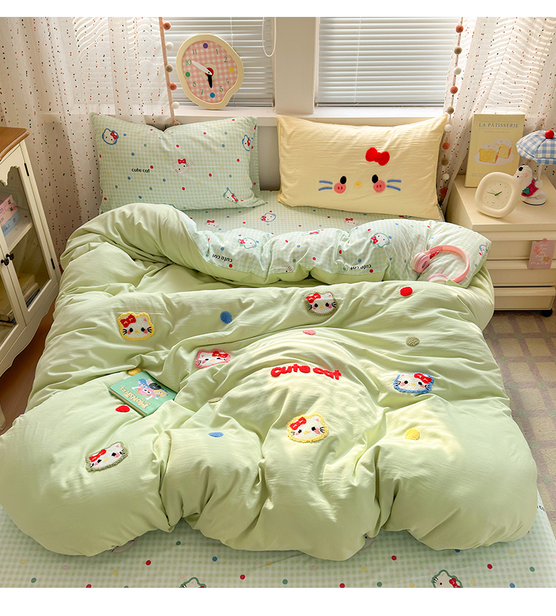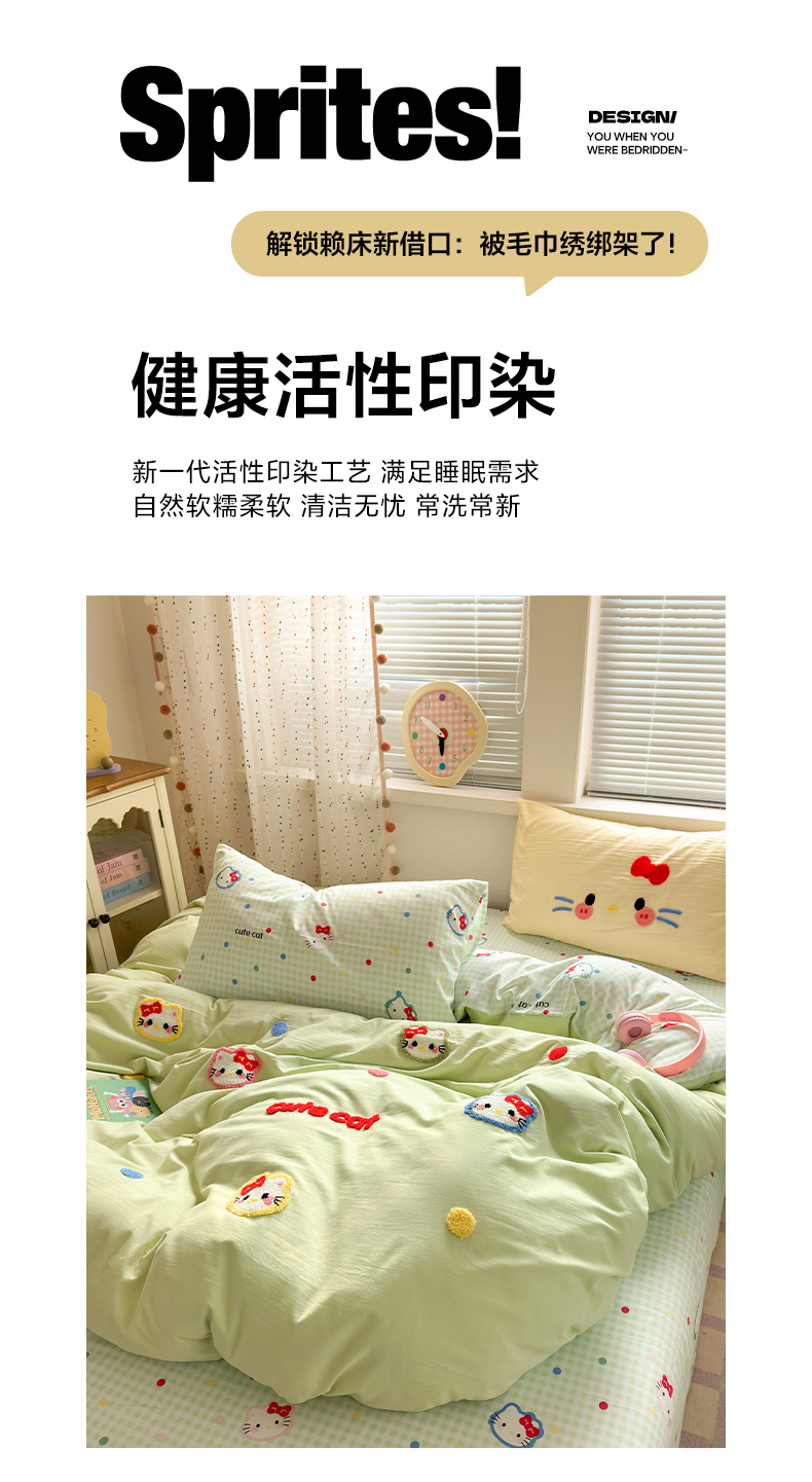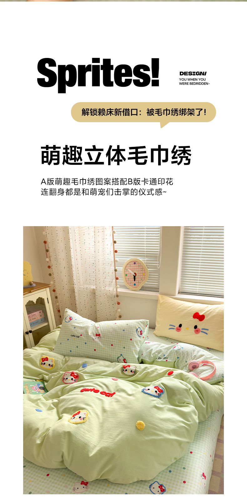 当前位置: 91家纺网 > 商品网购 > 床品套件 > 四件套 > 毛巾绣四件套 > 卡迪熊家纺 2025新款水洗棉毛巾绣可爱猫咪系列 晚安喵-绿