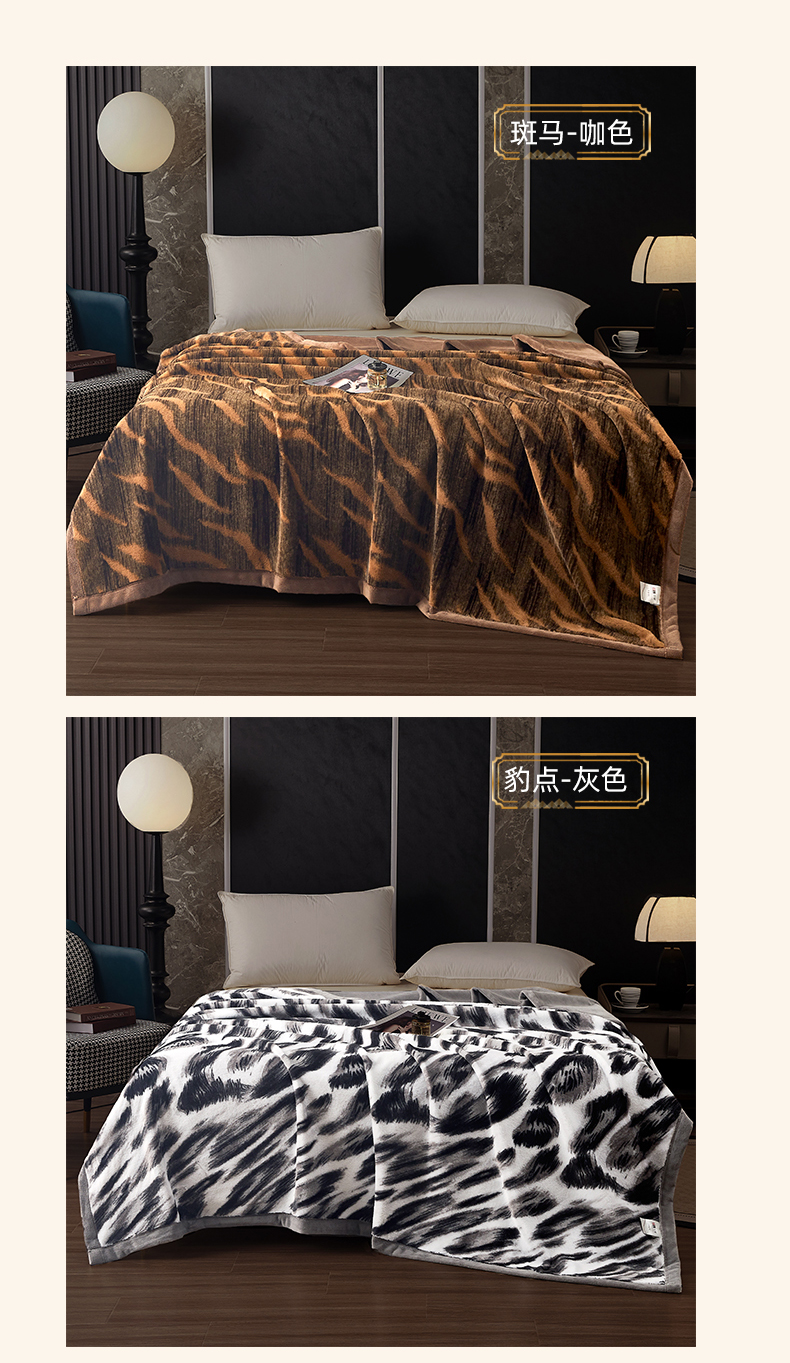 2025新款仿水貂绒兔毛绒雪棉绒云貂绒拉舍尔双层复合毛毯子 美拉德-豹纹咖