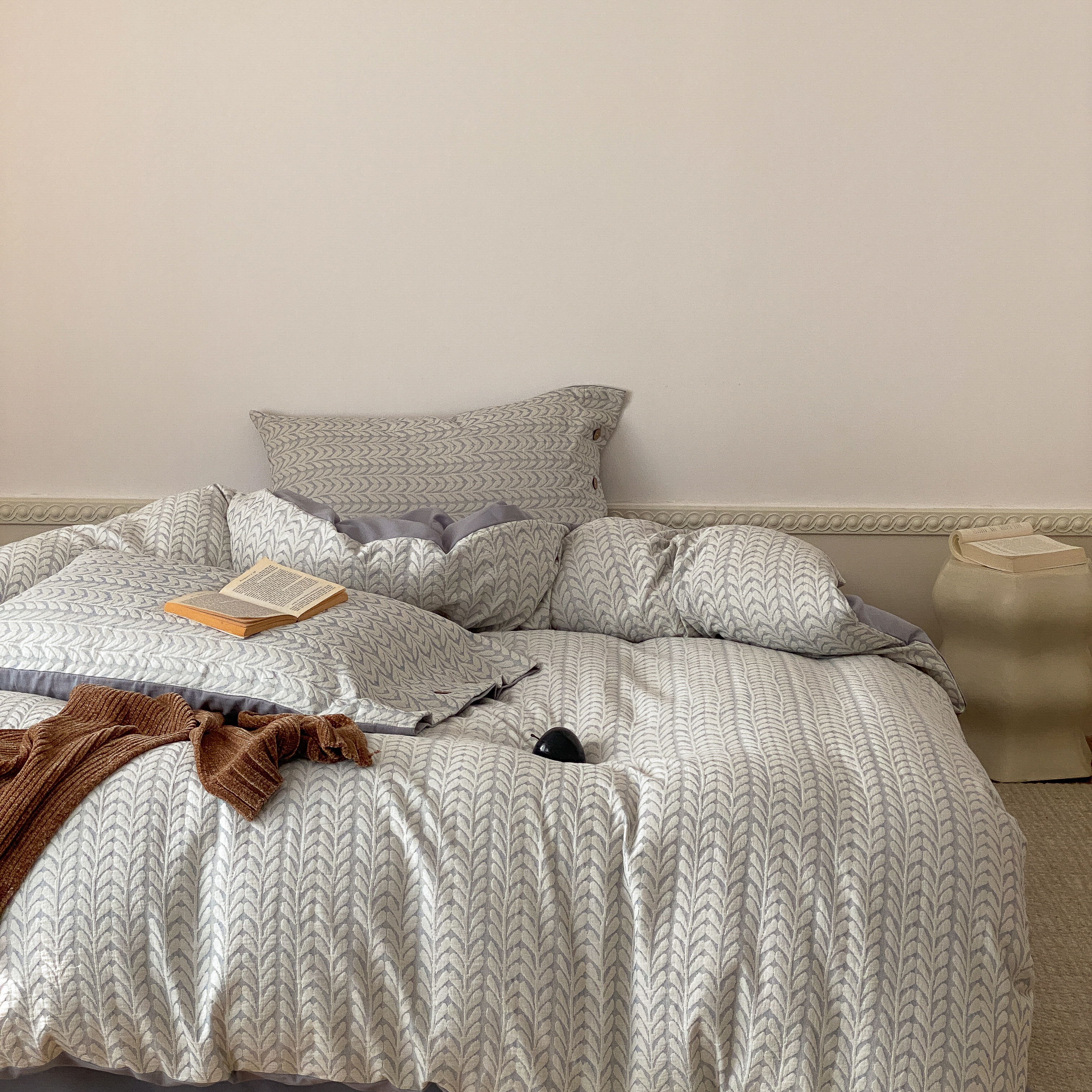 (总)旷野 2025新款全棉华夫格提花磨毛四件套,吉野-巴黎灰,吉野-豆蔻粉,吉野-丝绒红