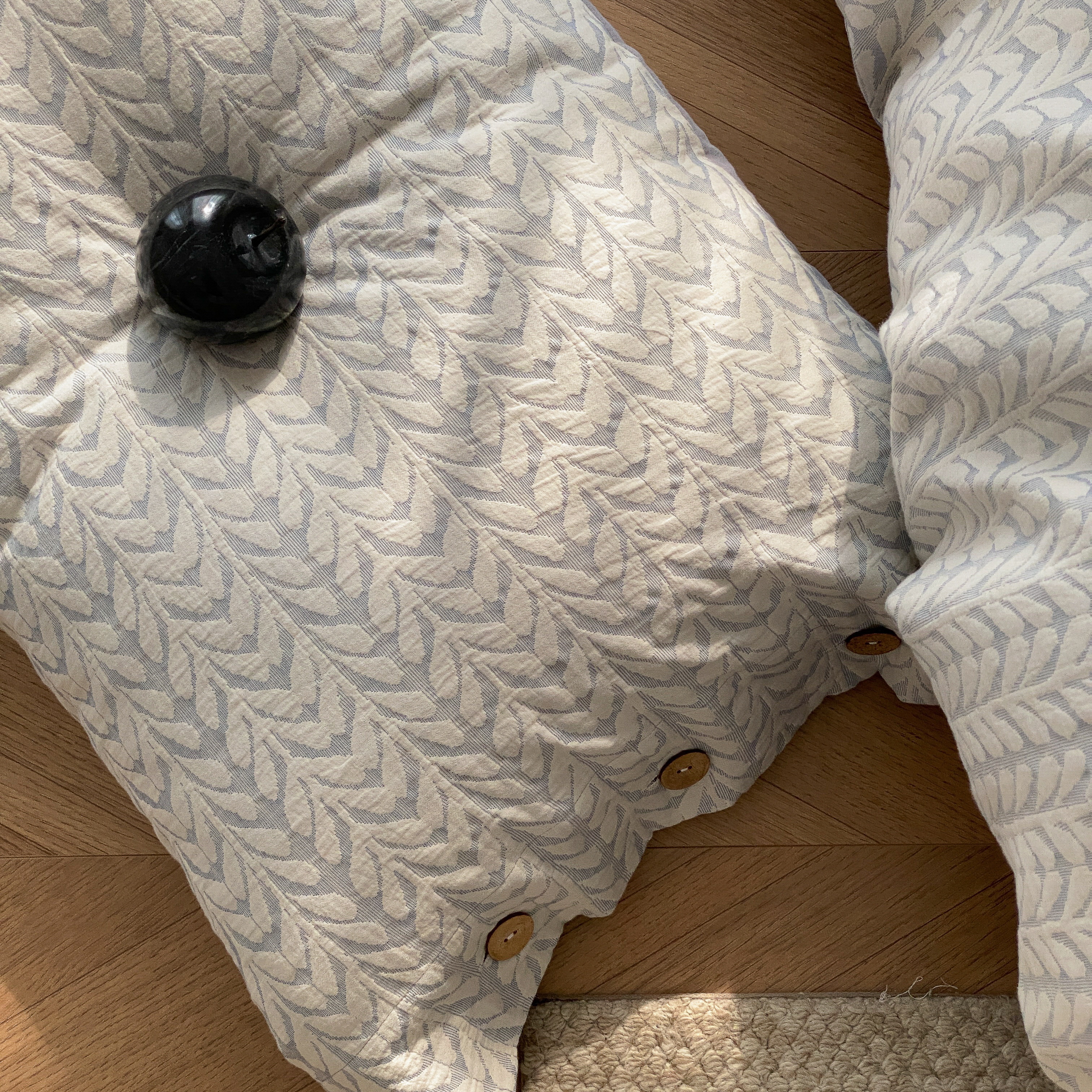 商品名称:旷野 2025新款全棉色织大提花100支磨毛四件套 千枝叶-蓝
