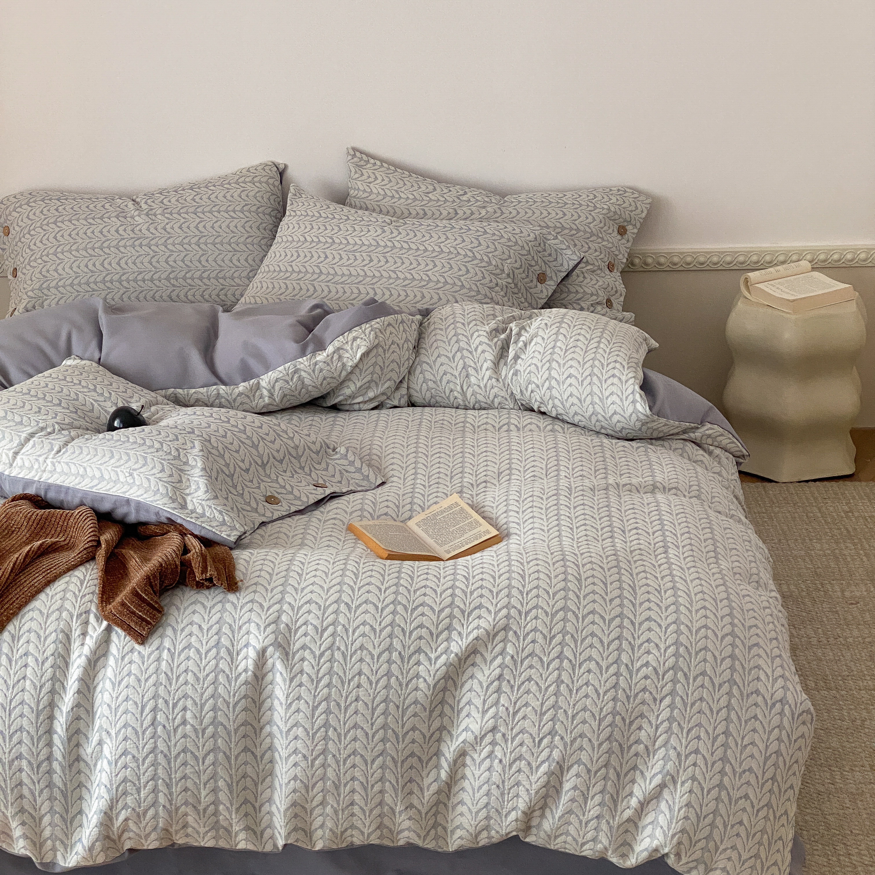 (总)旷野2025新款全棉纯棉色织空气层提花泡泡纱四件套,悉尼海岸-灰,悉尼海岸-蓝,悉尼海岸-棕