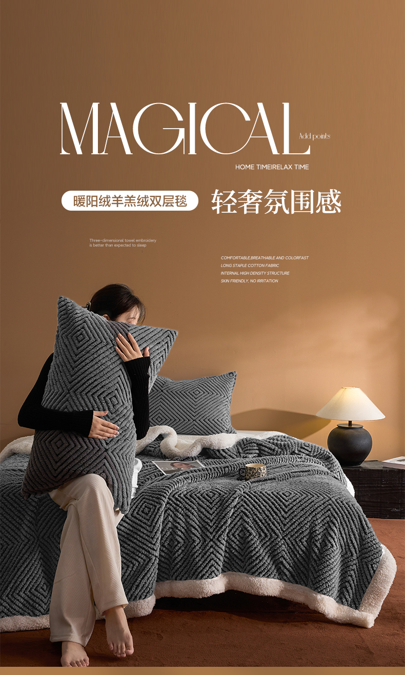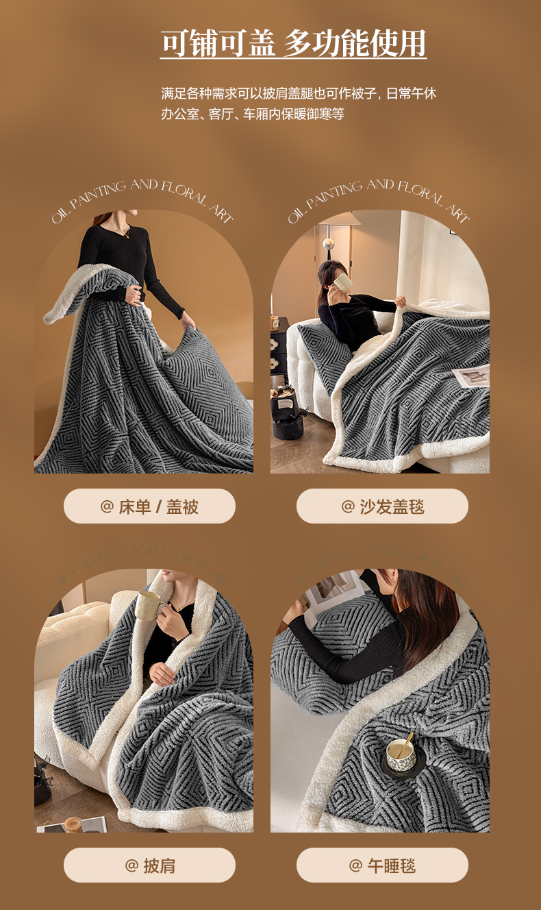 (总)欧邦 2025新款提花暖阳绒羊羔绒毛毯多功能盖毯-梦境系列,梦境-粉玉,梦境-幻白,梦境-米驼,梦境-桑绿,梦境-雾灰