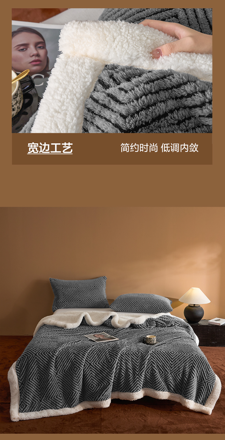 商品名称:欧邦 2025新款航空轻奢暖阳绒羊羔绒毛毯毯子 慕斯灰