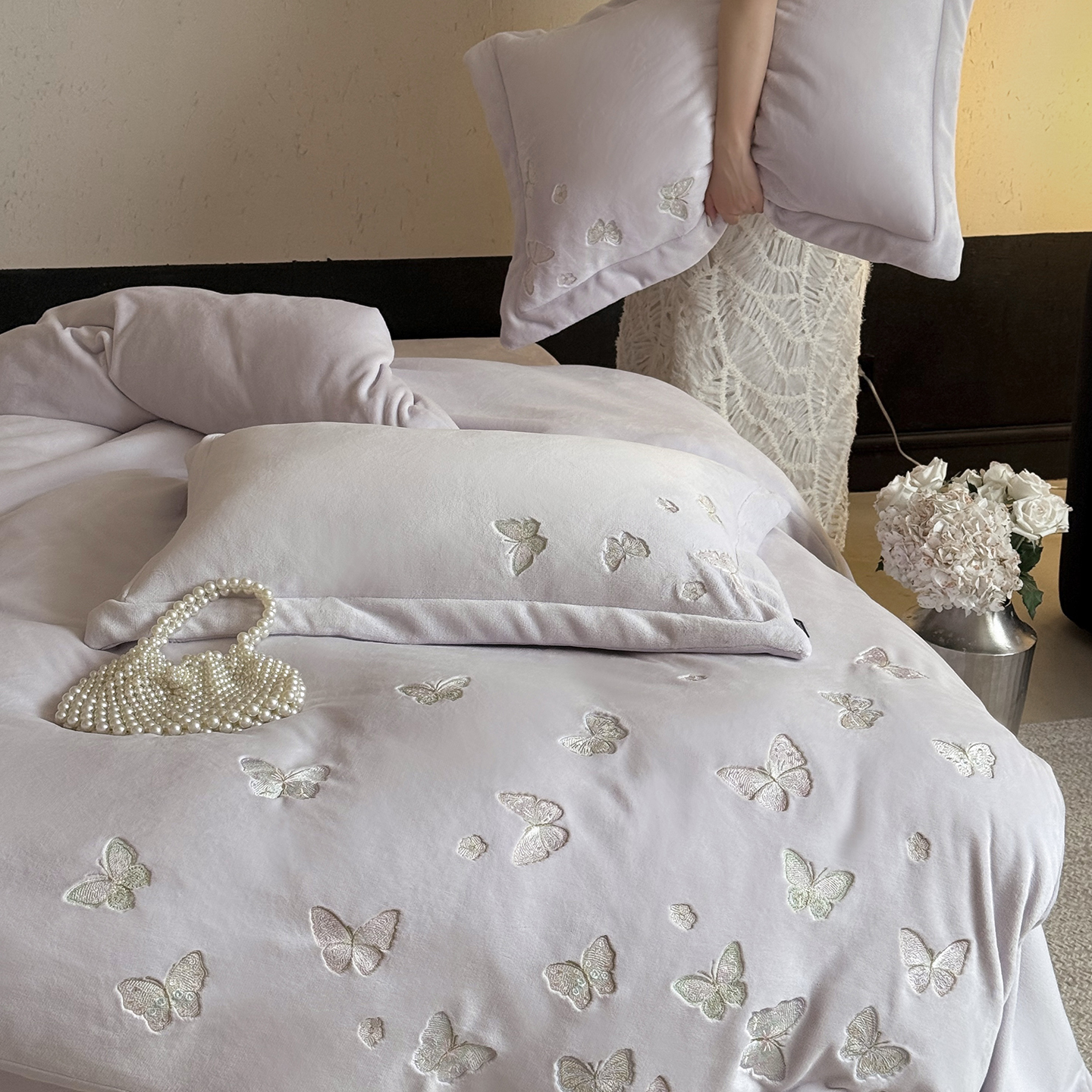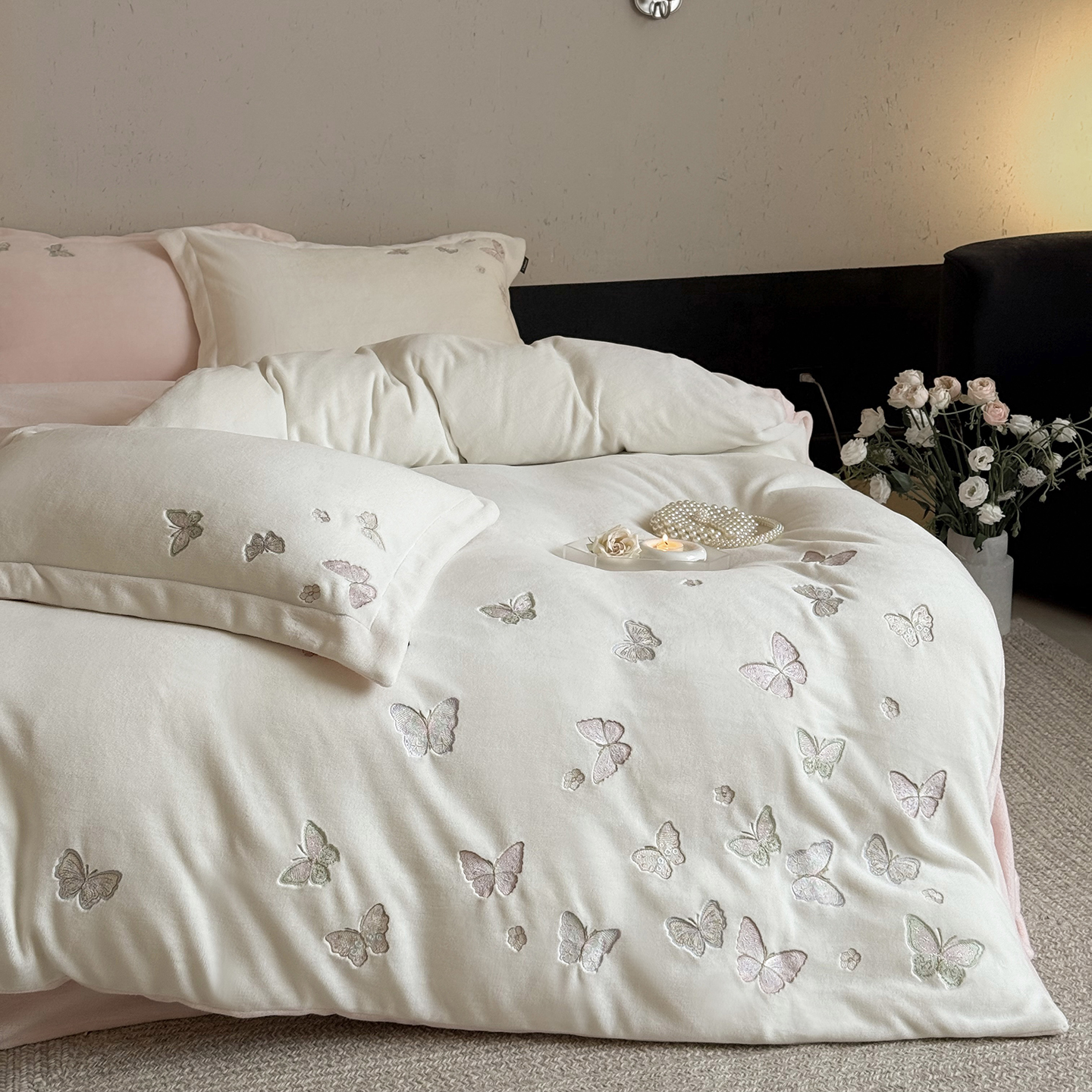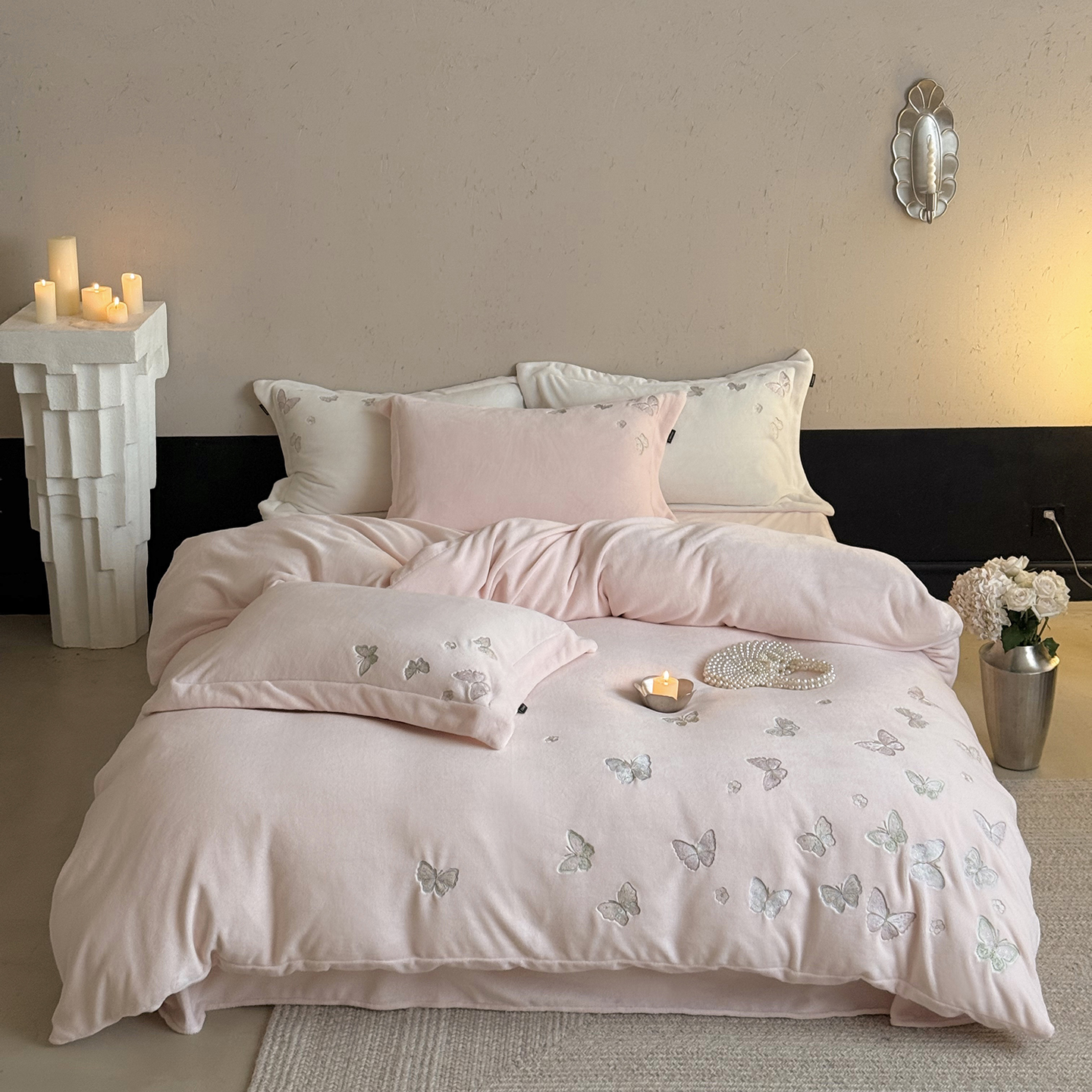 当前位置: 91家纺网 > 商品网购 > 床品套件 > 四件套 > 牛奶绒四件套 > 鹿班家居 2025新款冬季高克重牛奶绒精密刺绣系列四件套-温柔浅梦(标准会员-10元) 温柔浅梦-粉色
