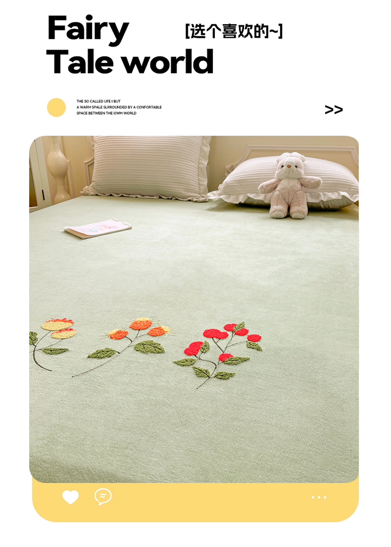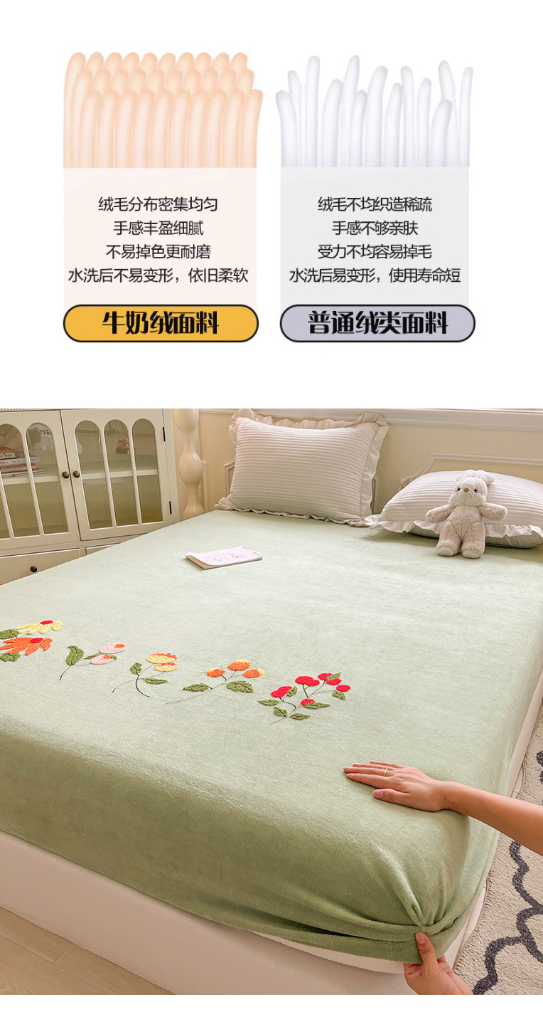 商品名称:子钦家纺 2025秋冬新款加厚牛奶绒毛巾绣床笠 万花丛中-豆绿