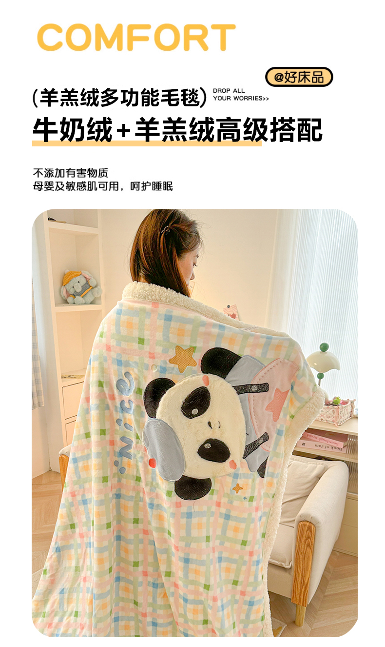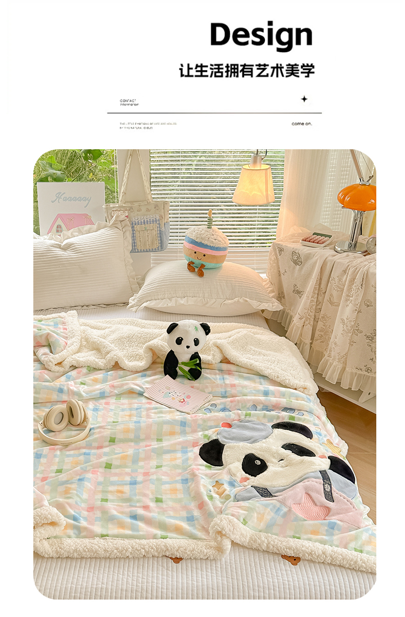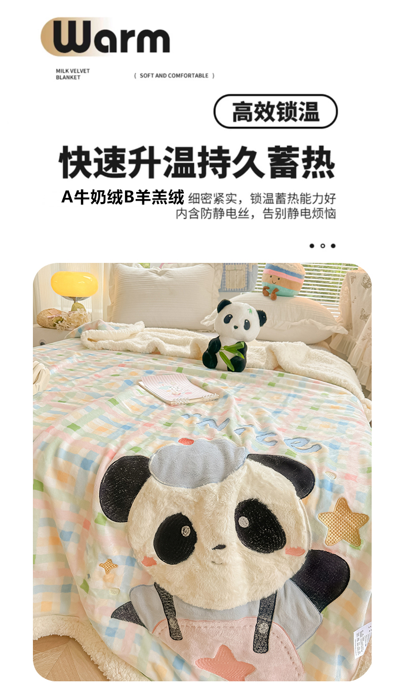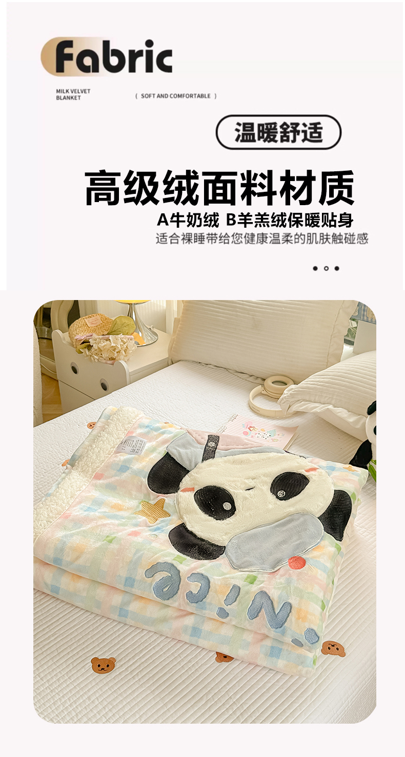 当前位置: 91家纺网 > 商品网购 > 毛毯休闲毯绒毯 > 毛毯 > 子钦家纺 2025新款秋冬加厚牛奶绒羊羔绒卡通贴布绣毛毯-快乐熊猫 毛毯快乐熊猫-七彩格