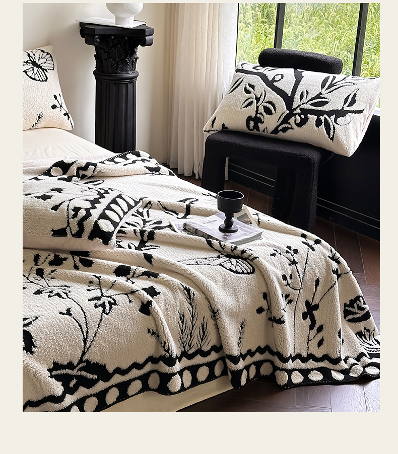(总)宜代光年 2025新款云貂绒色织提花双层毯-场景一,素影织梦-白,素影织梦-咖