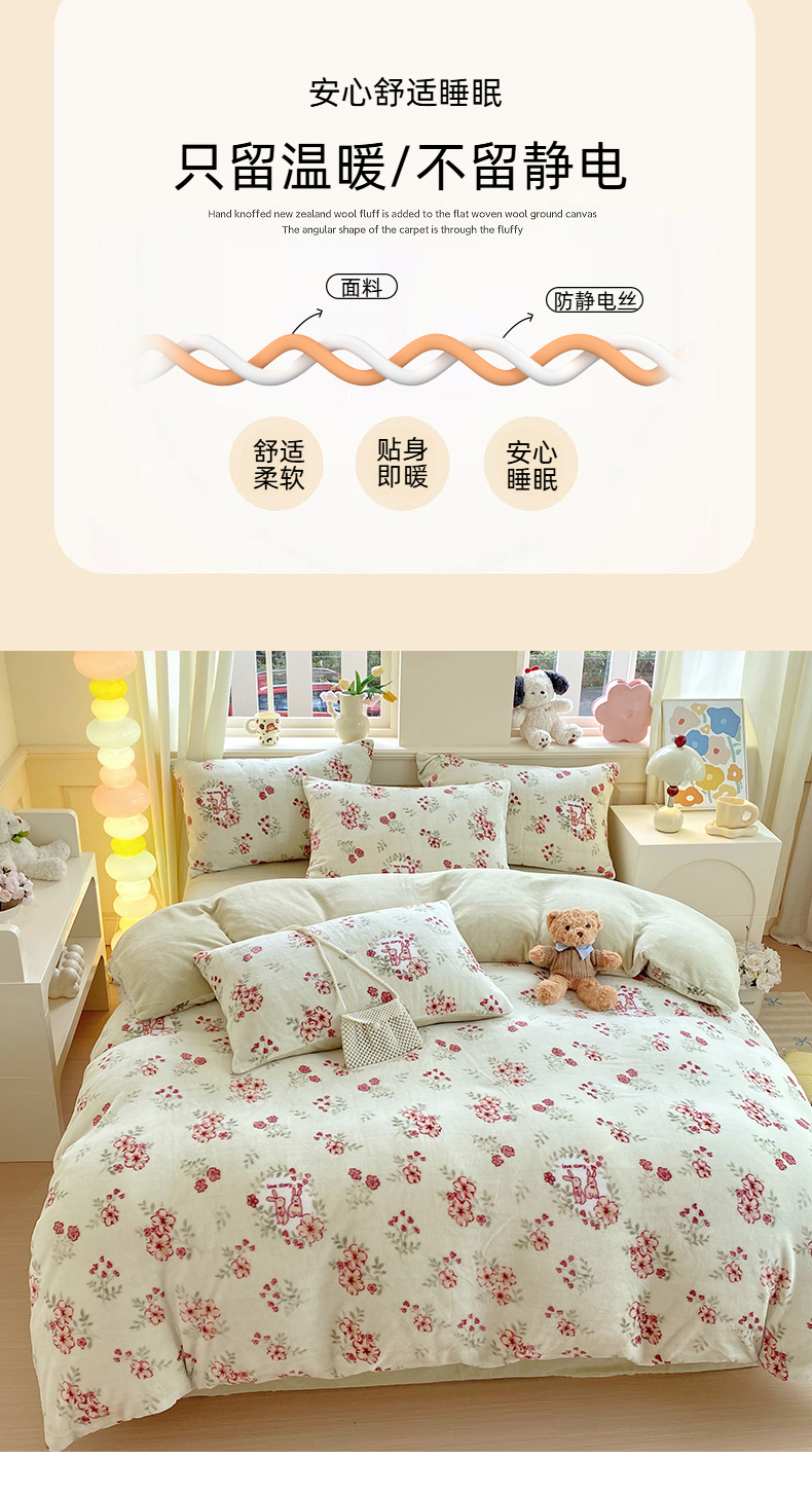 当前位置: 91家纺网 > 商品网购 > 床品套件 > 四件套 > 牛奶绒四件套 > YYDS网供 2025新款ins风牛奶绒四件套萌趣卡通三件套花卉单被套秋冬软fufu防静电 两小花落玉兔