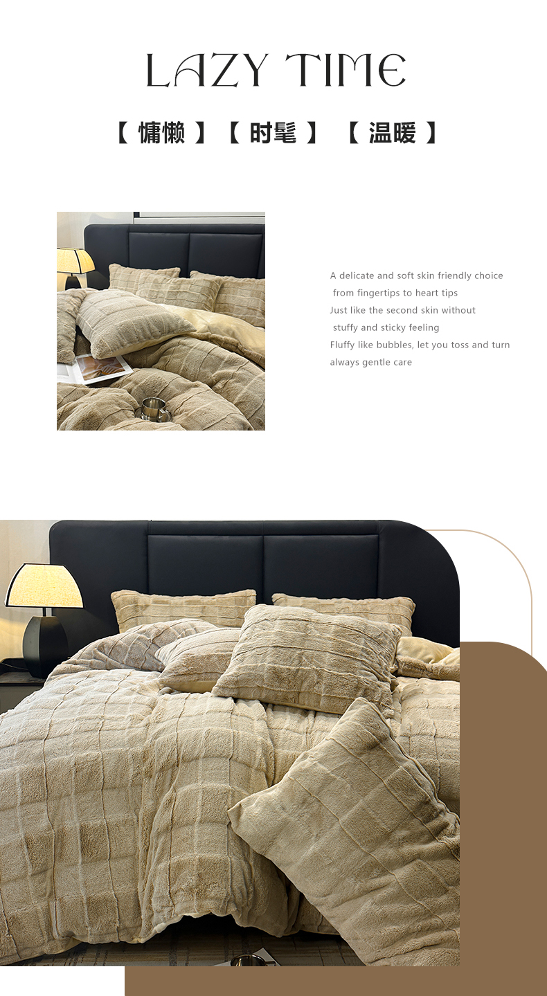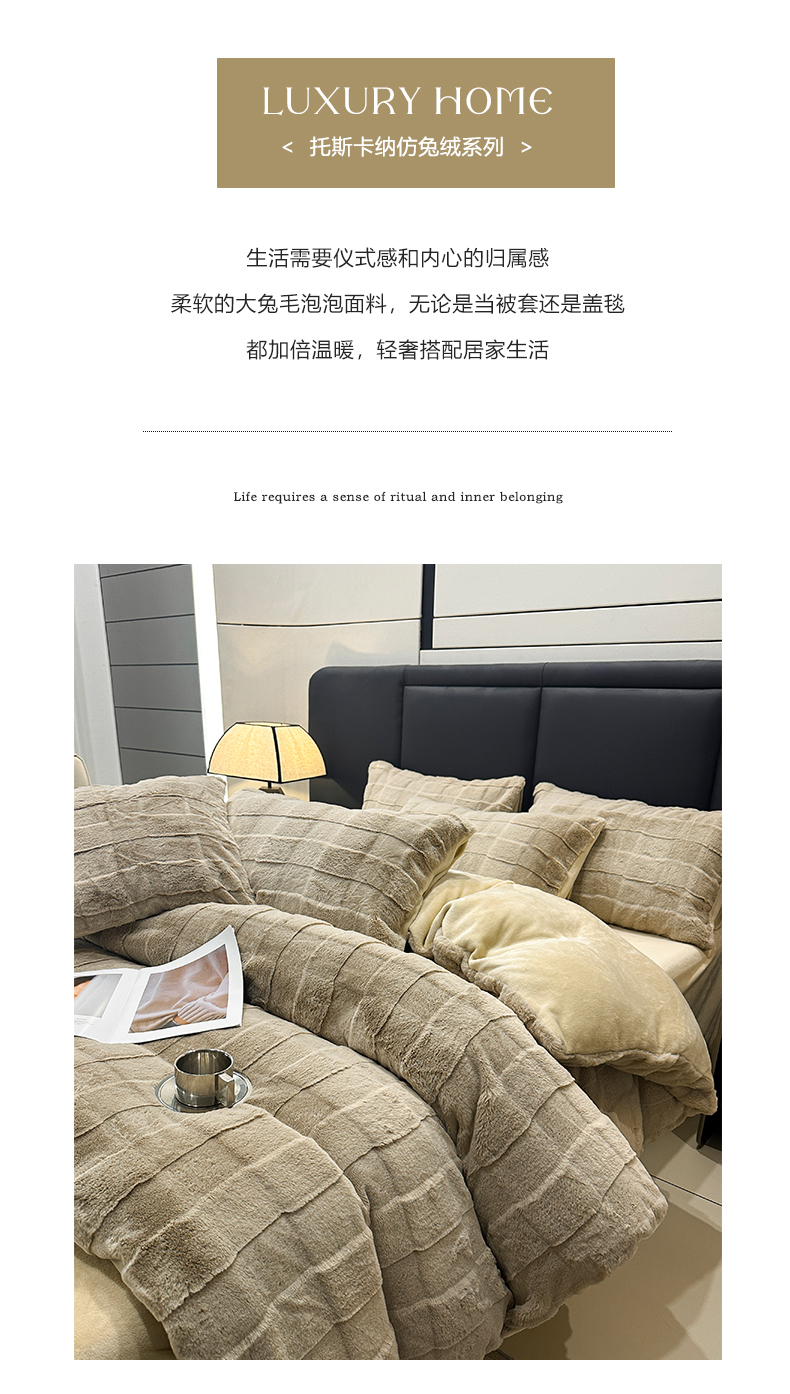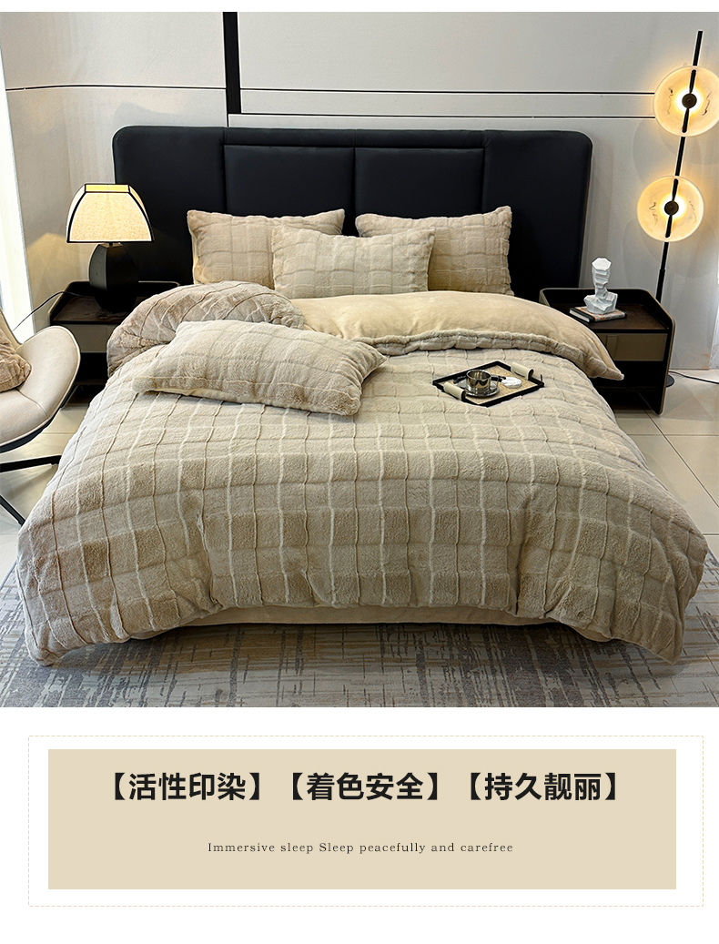 宜代光年 2025新款托斯卡纳仿兔绒四件套-方格套件 托斯卡纳-方格咖