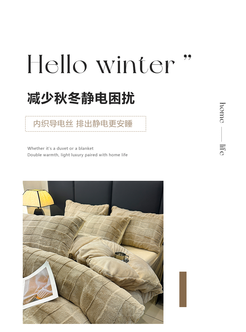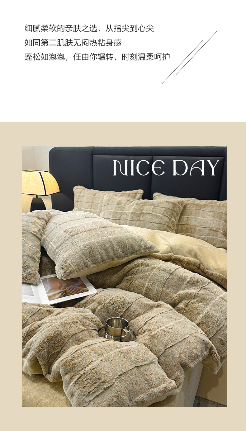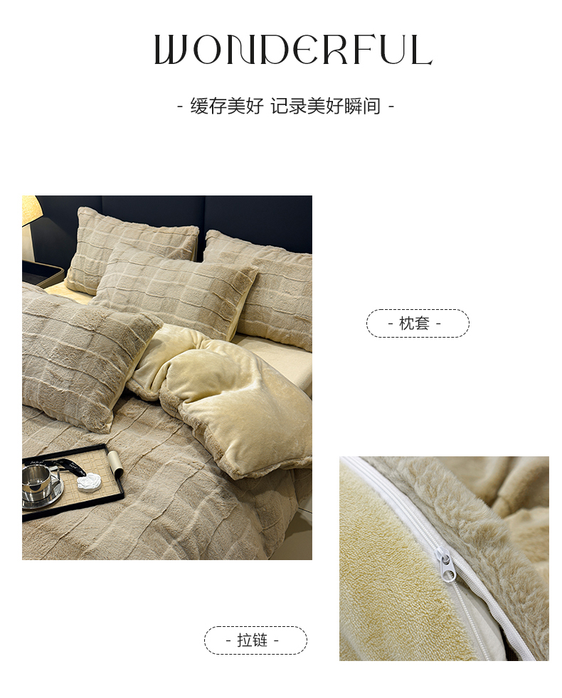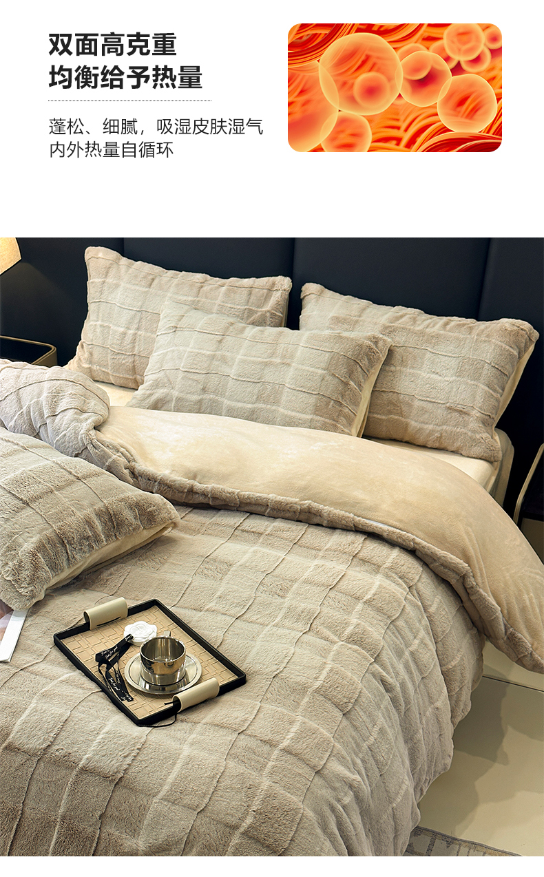 宜代光年 2025新款托斯卡纳仿兔绒四件套-方格套件 托斯卡纳-方格咖