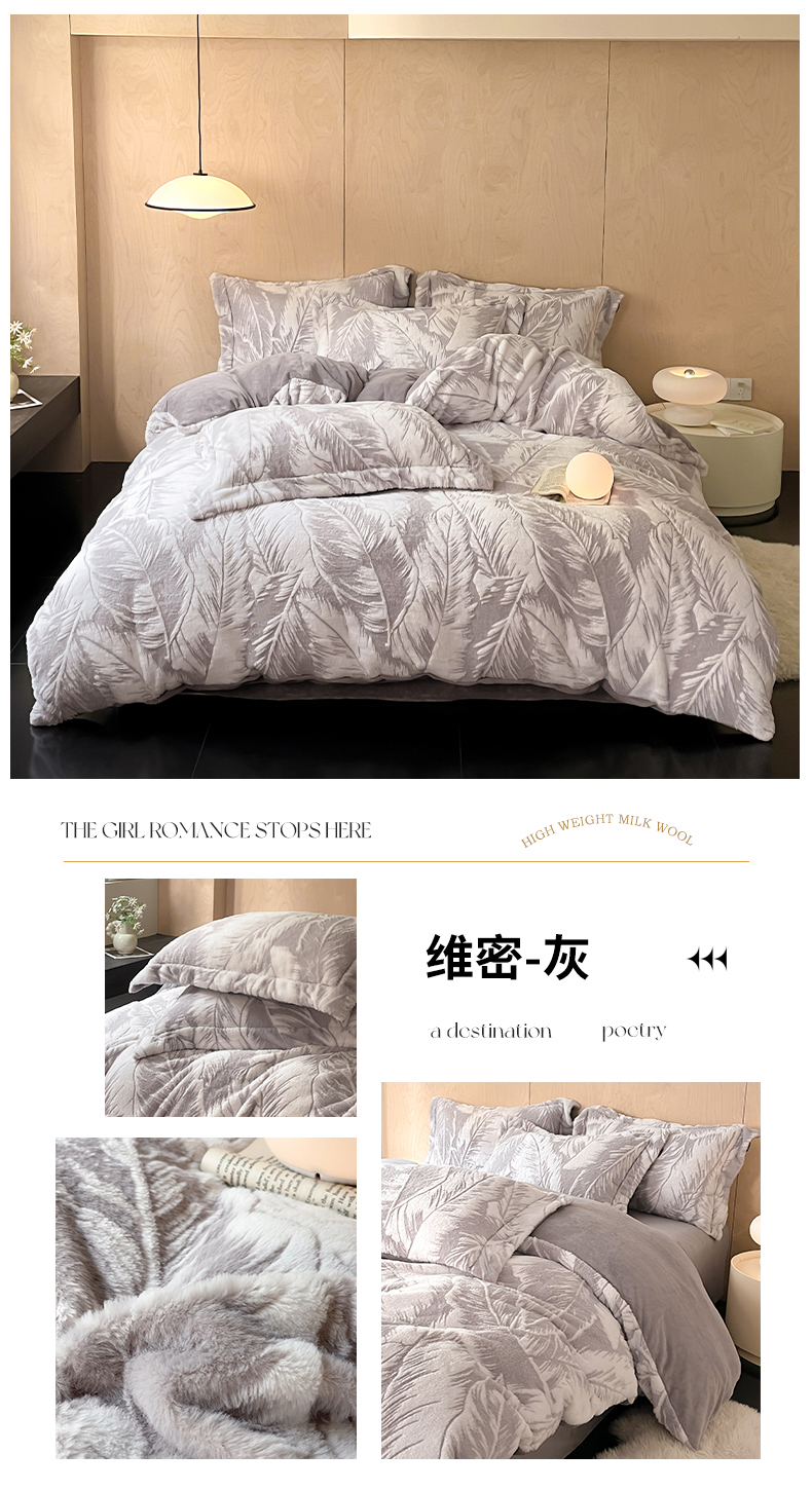 商品名称:宜代光年 2025新款兔绒色烂雕花保暖四件套 花恋-灰