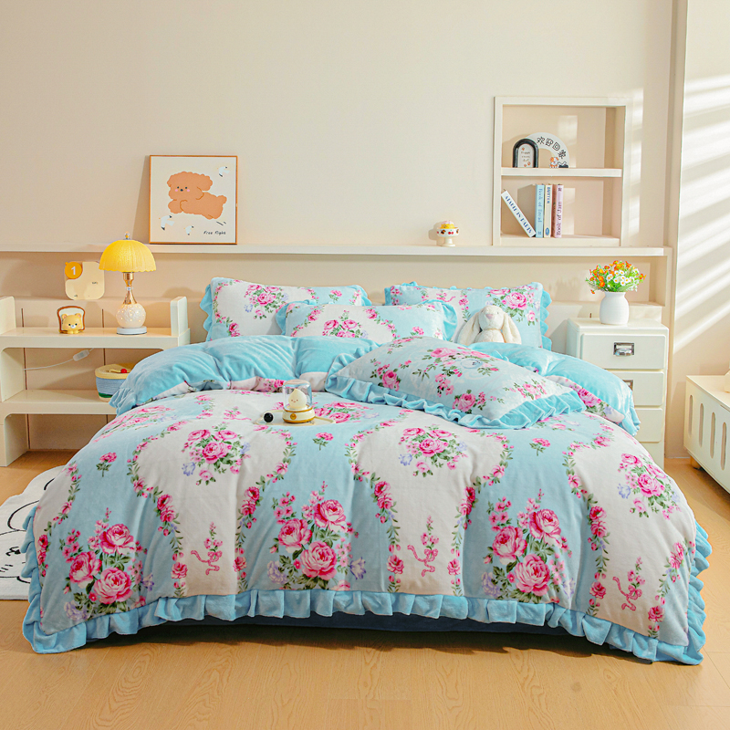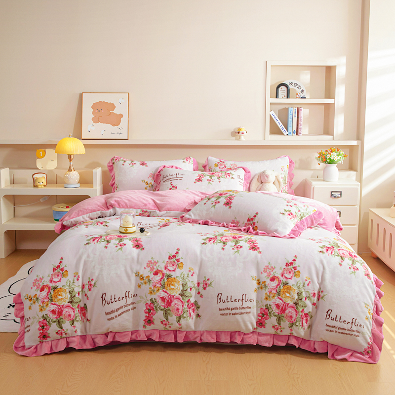 (总)绒宴家纺 2025新款印花小清新牛奶绒花边款四件套
